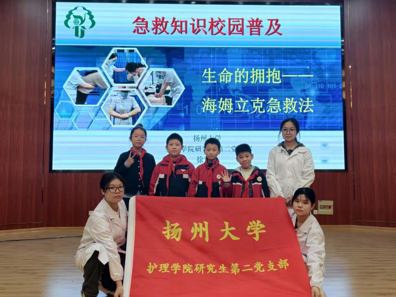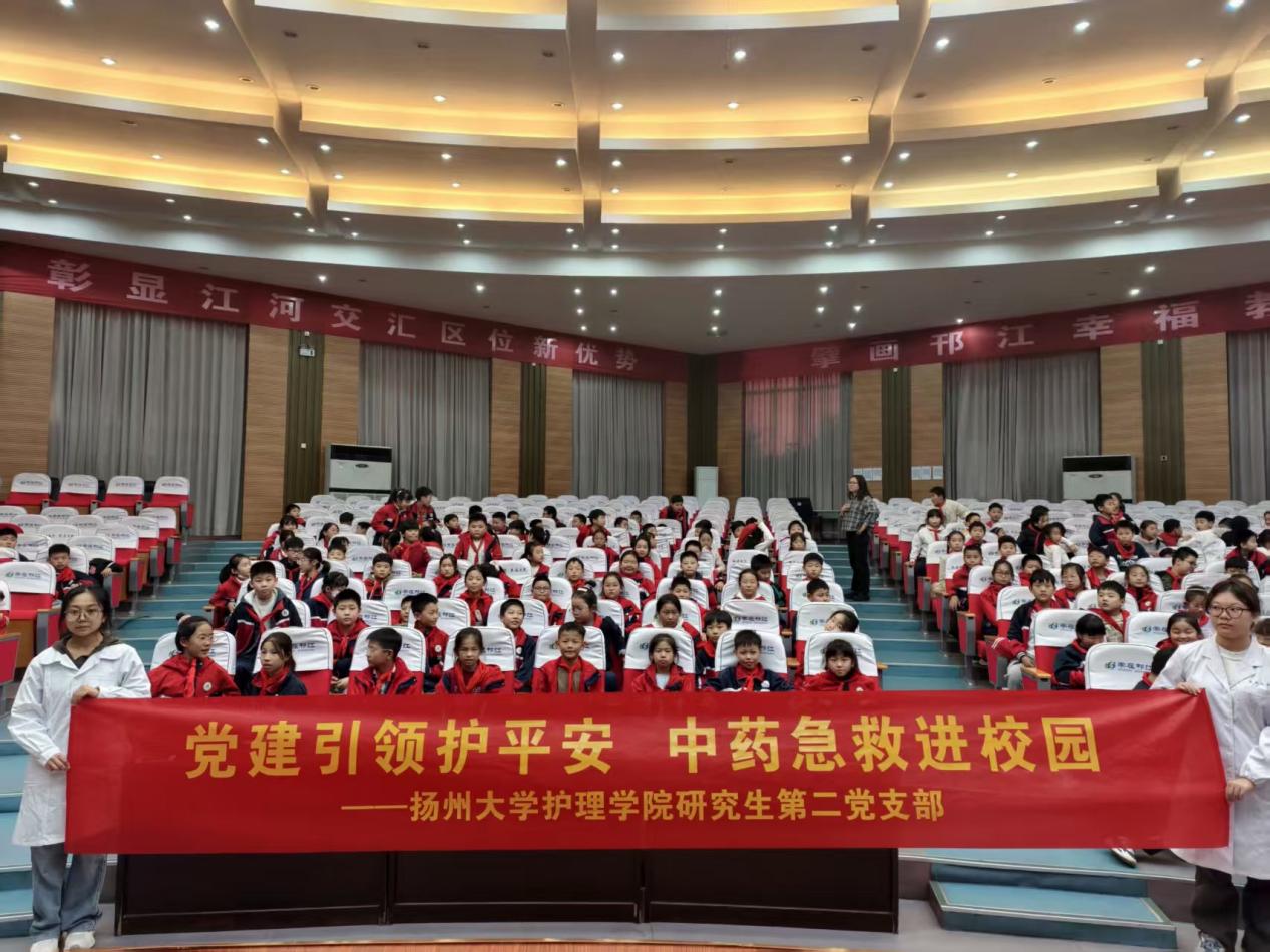 为深入践行习近平新时代中国特色社会主义思想,弘扬“人民至上、生命至上”理念,2025年11月5日,扬州大学护理学院研究生第二党支部赴邗江区实验学校美琪分校,组织开展“中药急救知识校园普及”主题党日活动,充分发挥党员的先锋模范作用,以专业所长服务社会所需。