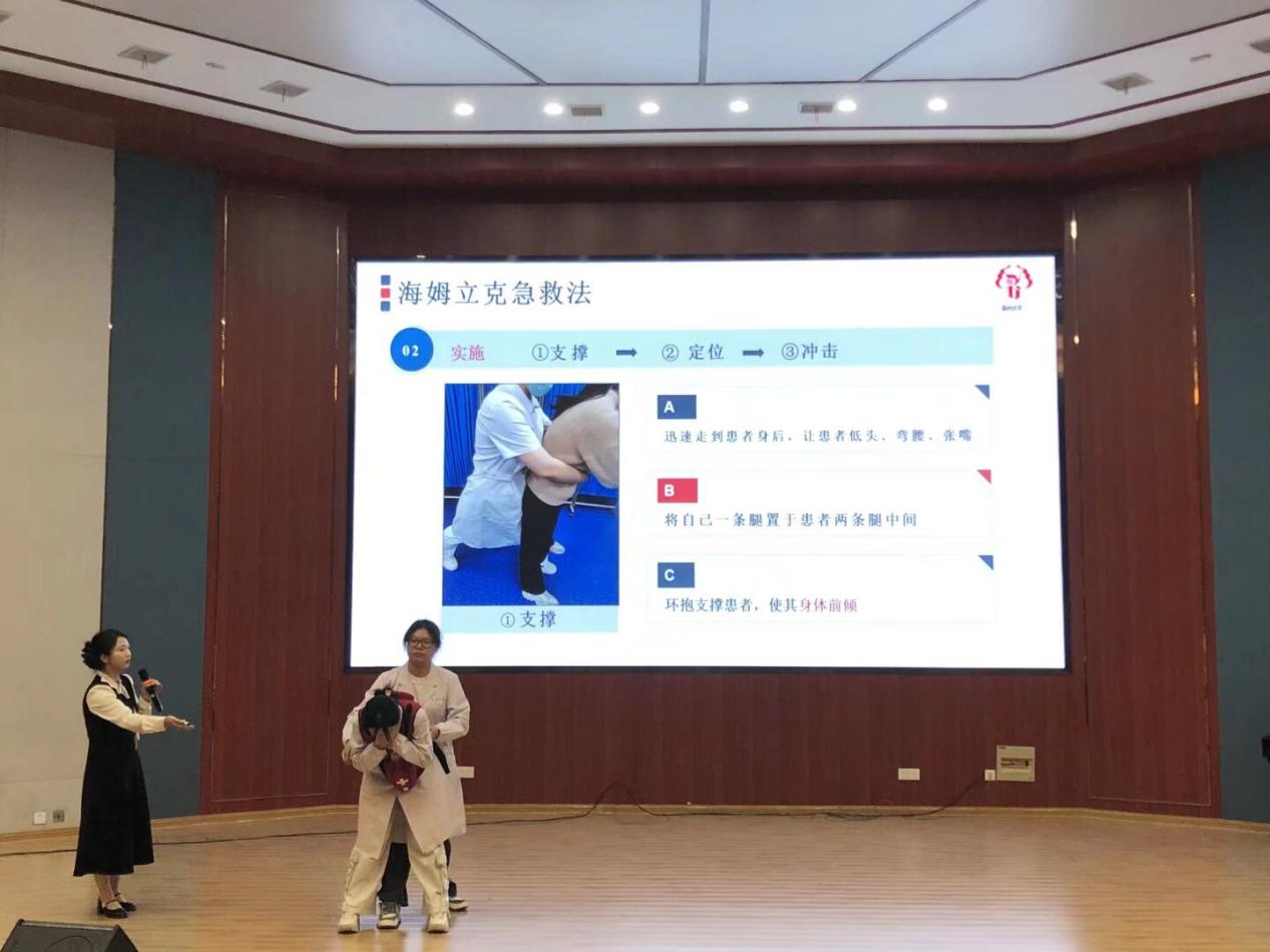 在急救知识专题讲解环节,支部书记徐慧文老师充分发挥护理专业优势,借助图文并茂的PPT与通俗易懂的语言,系统讲解了海姆立克急救法的基本原理、适用场景及操作要点,重点阐述了突发气道异物梗阻时的应急处理流程,切实增强了学生们的自救互救意识。