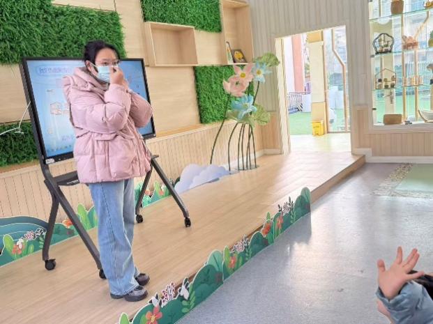手工环节结束后,志愿者结合护理专业背景,为孩子们带来了一场贴合实际的冬季健康知识小课堂。通过图片展示和情景模拟,讲解流感、手足口病等常见冬季疾病的预防方法,并现场示范“七步洗手法”和正确佩戴口罩的步骤。孩子们跟着一步一步练习,在互动中掌握实用的健康防护技能。