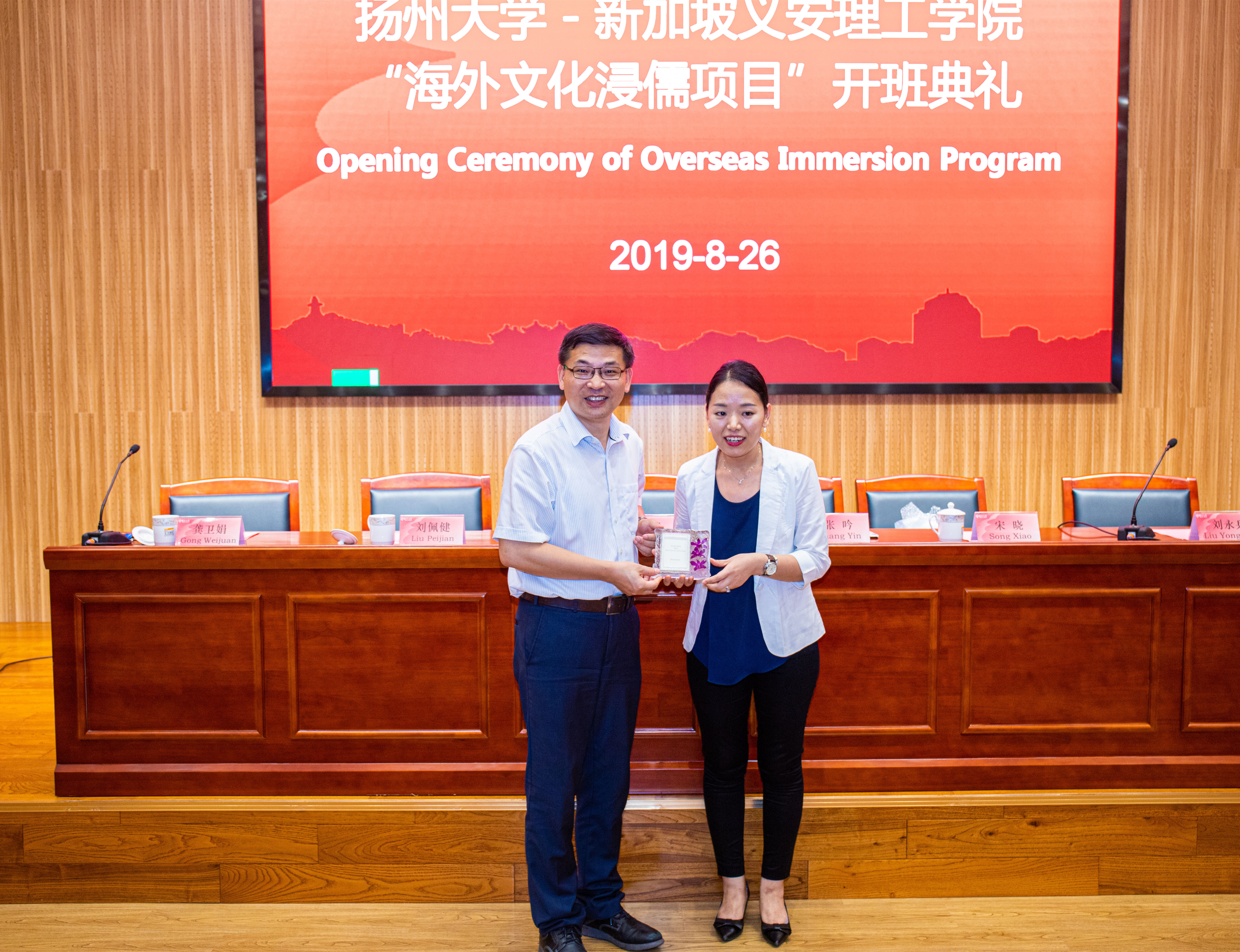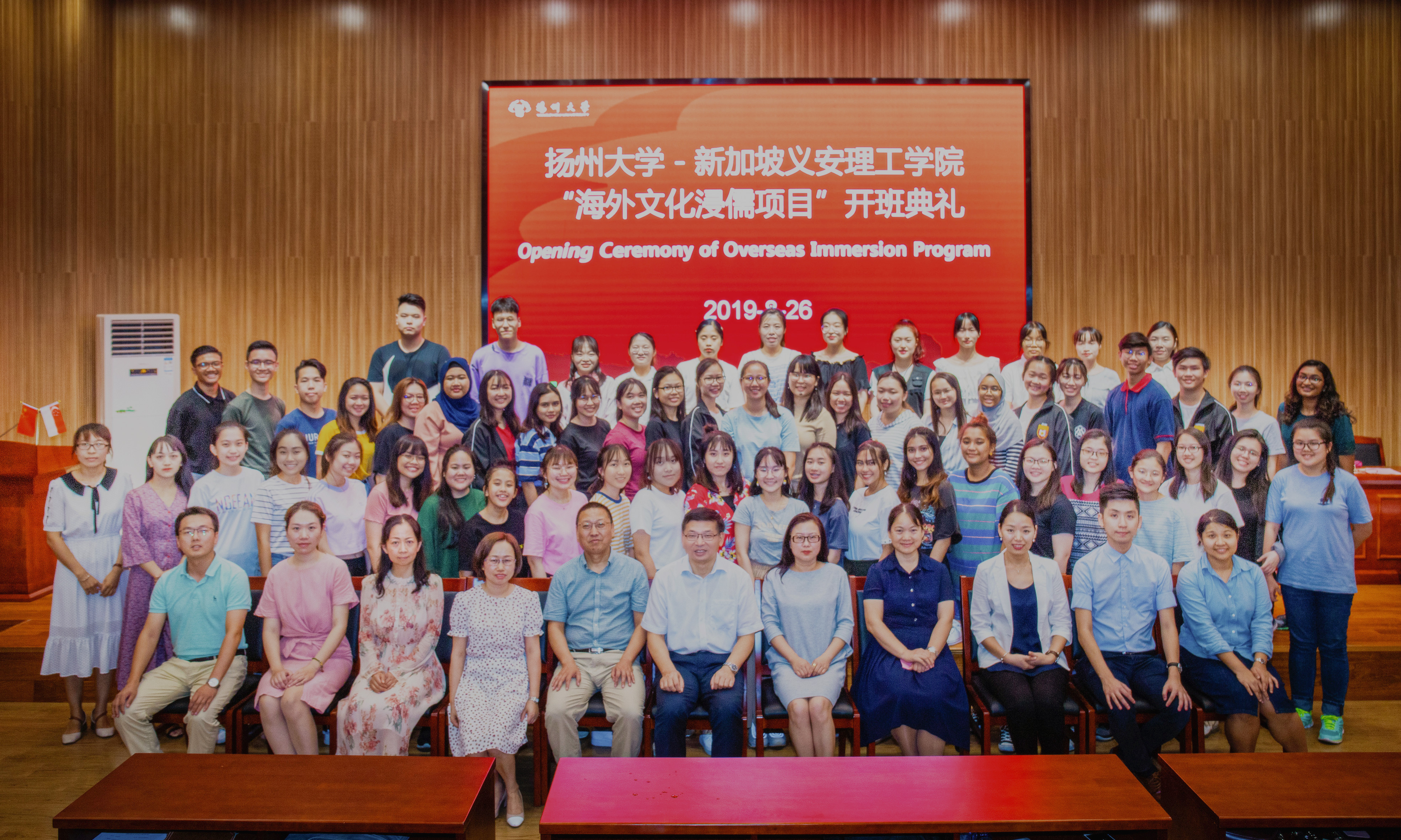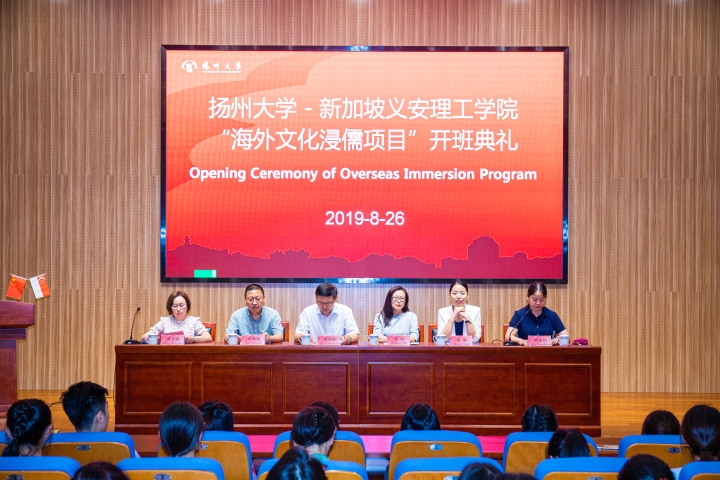 8月26日晚,扬州大学-新加坡义安理工学院“海外文化浸儒项目”开班典礼在扬州大学护理学院报告厅举行。扬州大学副校长刘巧泉、海外教育学院院长张吟、护理学院党委书记刘佩健、护理学院院长龚卫娟、护理学院党委副书记邹明玮、护理学院副院长刘永兵、护理学院和新加坡义安理工学院的师生参加开班典礼。开班典礼由护理学院刘永兵副院长主持。