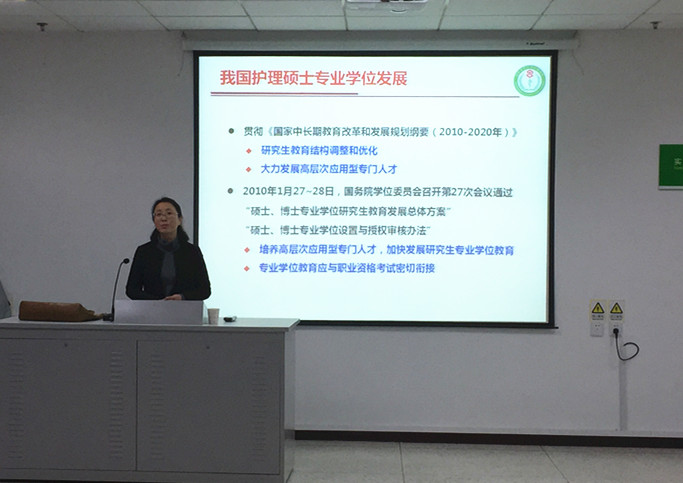 1月9日下午,南京医科大学护理学院院长崔焱教授为我院师生做了题为“护理硕士专业学位点的申报和护理专业硕士的培养”的学术报告。崔焱教授对我院拟申报的护理专业硕士点的准备工作提出了很多建设性的意见,并和我院师生分享了南京医科大学护理学院专业硕士点在招生、培养和毕业考核等环节的成功经验。报告结束后,我院龚卫娟院长和扬州大学附属医院护理部胡艺主任与崔焱教授就专业硕士培养问题进行了深入的探讨。