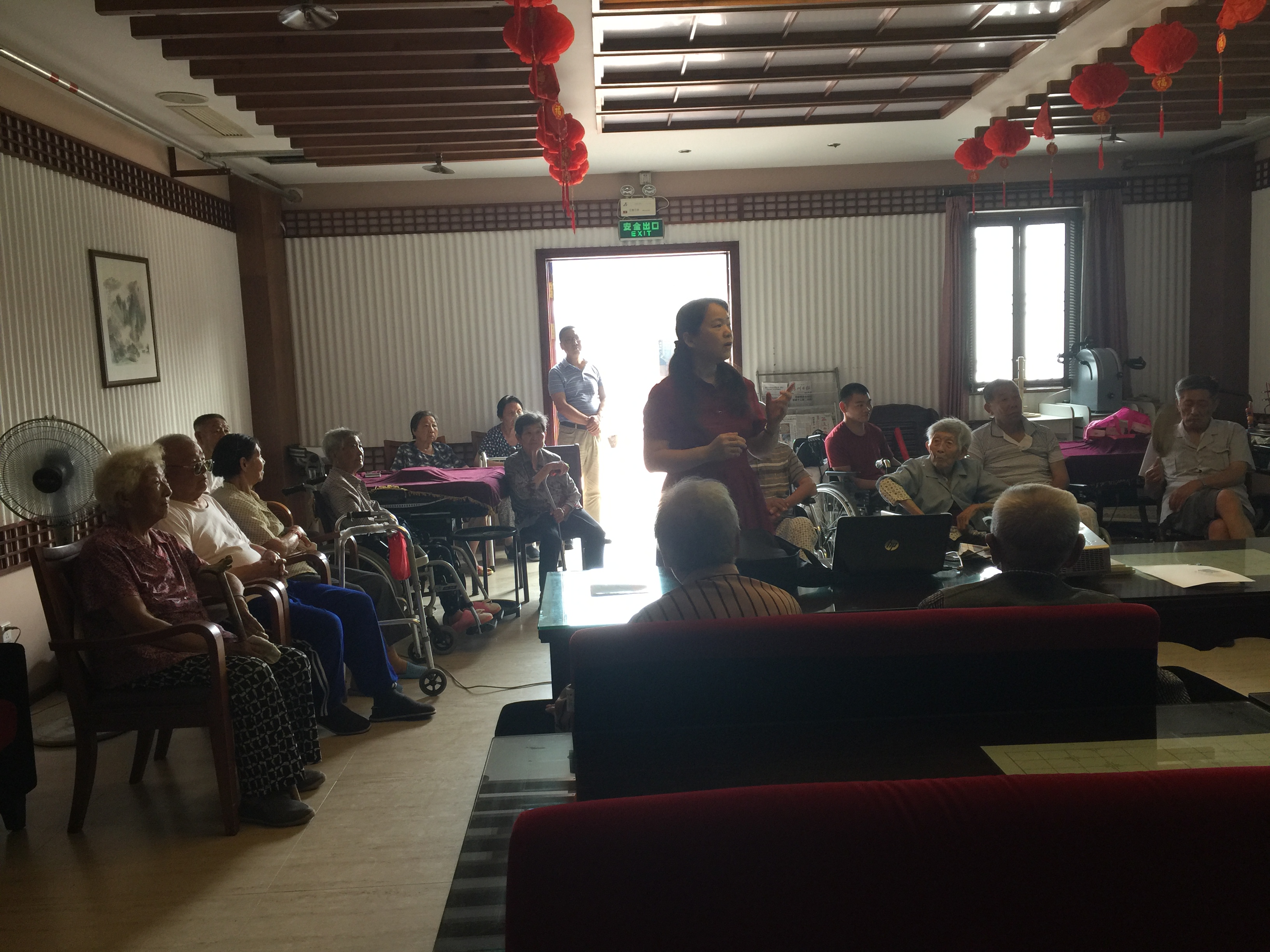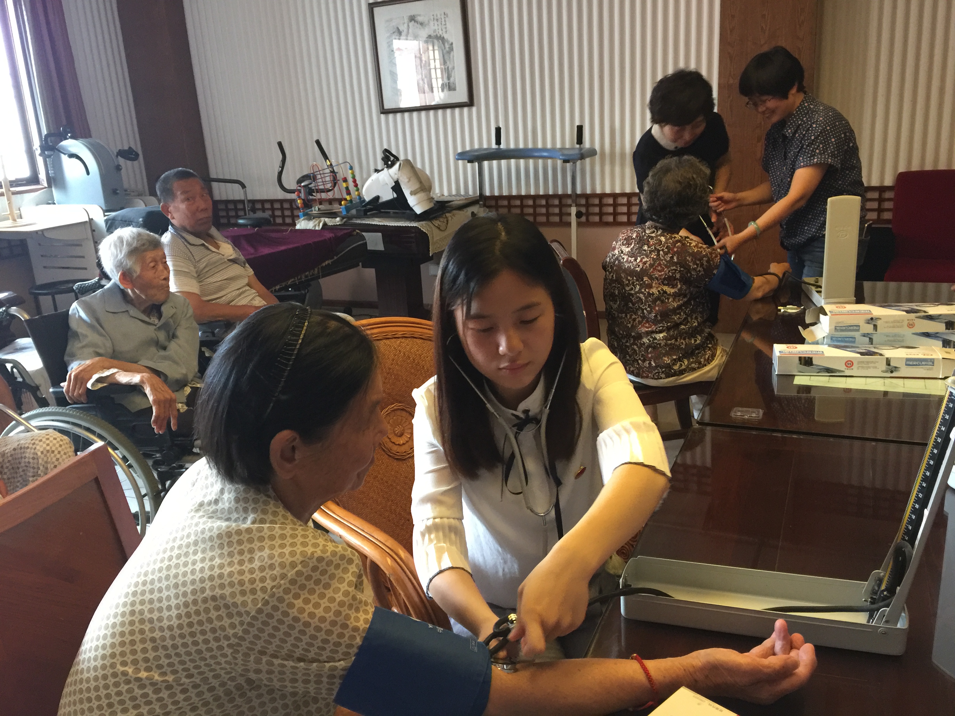 2017年6月21日下午,护理学院教工支部全体党员佩戴党徽,集中前往扬州华康养老公寓开展志愿服务活动。养老公寓的负责人首先介绍了华康养老公寓的医疗设施、居住环境、老人们的健康状况等基本情况。根据负责人介绍的老人的健康状况,刘永兵副院长进行了老人护理知识方面的专题讲座。讲座上,刘院长用平实的语言和易懂的实例深入浅出地讲解了老年人易得疾病、合理用药以及日常生活中的注意事项,受到了老人们的热烈欢迎。随后,全体党员分为三组,第1组为老人做家务,第2组陪老人聊天,第3组帮助老人测量血压并解答老人生活中的健康问题。志愿活动结束前,根据老人的疾病特点和实际需求,教工党支部赠送了事前准备好的药杯、尿垫等实用的礼物。