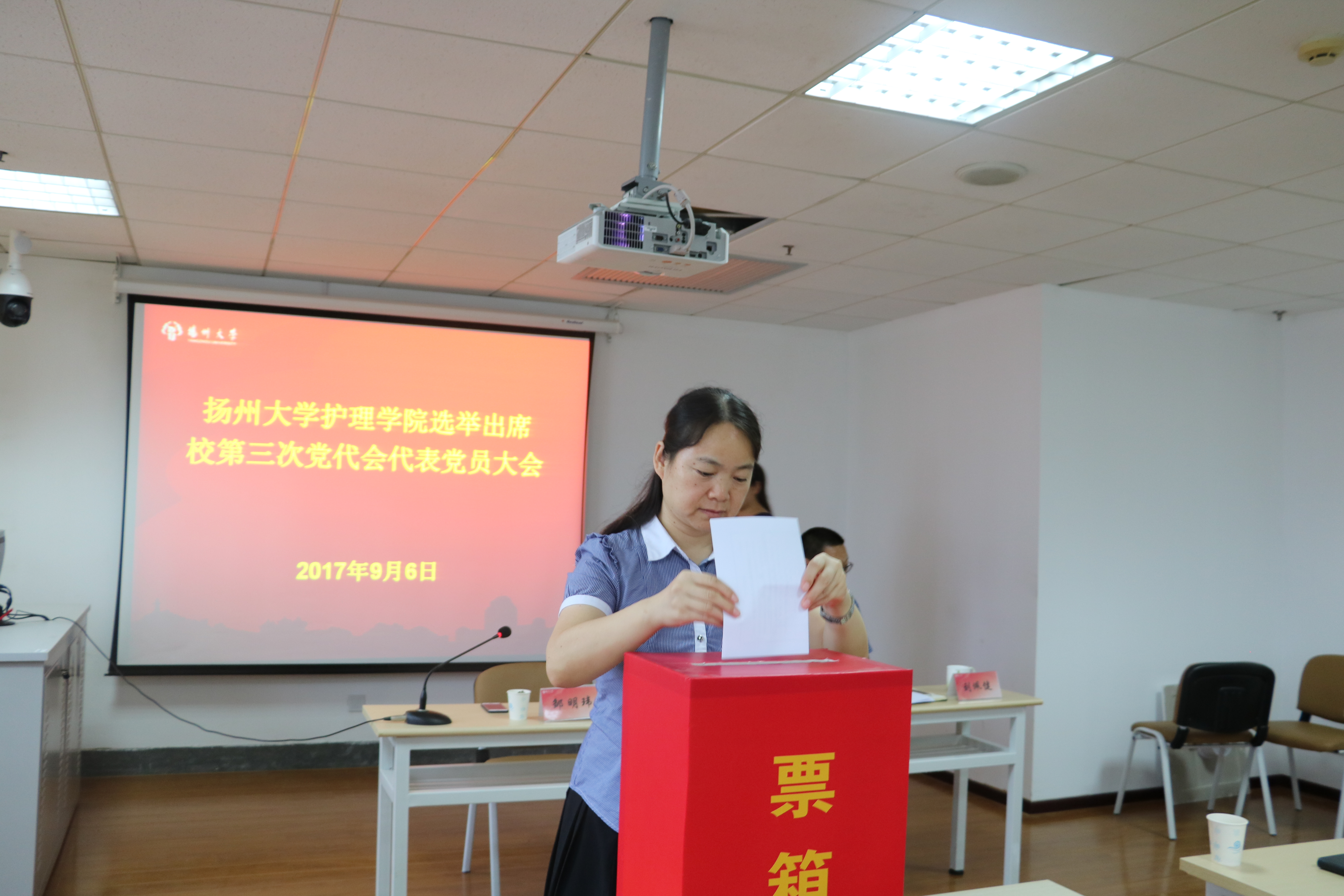 9月6日,扬州大学护理学院选举出席校第三次党代会代表党员大会在逸夫图书馆东区三楼会议室隆重召开。大会由院党委书记刘佩健同志主持,护理学院全体党员参会。