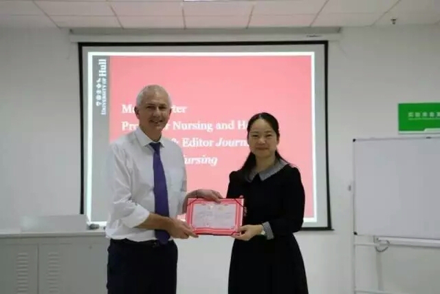 活动开始前,护理学院副院长刘永兵给Mark教授颁发了“客座教授”聘书,旨在促进双方合作,加强双方交流。此次活动分为两场。上午,Mark教授与新进老师和研究生进行了深入的交流,我院教师和研究生汇报了自己科研的阶段性成果,Mark教授在此基础上提出了高屋建瓴的指导意见。下午,Mark教授在护理示教室做了题为“Writing for successful publication”的学术报告。报告会上教授详细地介绍了科研投稿中如何正确地选择科研杂志,其过程中影响因子的重要性,并强调了英文写作的五个黄金守则及英文投稿的注意事项。