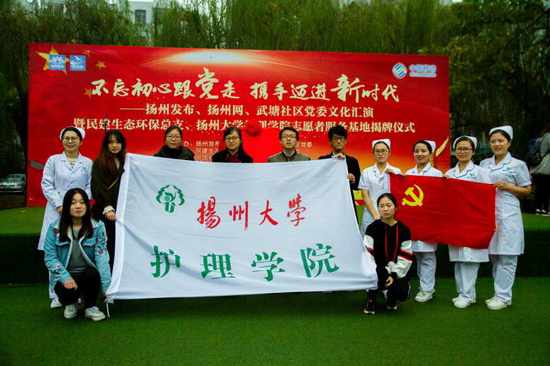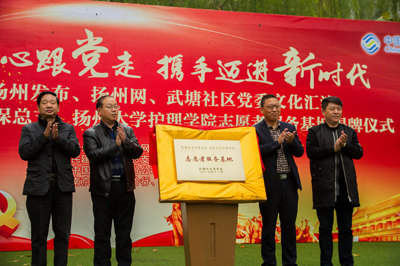 2017年11月17日,民建生态环保总支部和护理学院在扬州武塘社区举行了共建志愿服务站的揭牌仪式。出席此次共建仪式的有:扬州大学护理学院党委书记刘佩健、扬州市政协副秘书长、民建扬州市委副主委黄锦山,民建扬州市委副调研员徐跃,扬州大学护理学院党委副书记邹明玮,民建扬州市委委员、广陵区总支部主委黄红兴,民建扬州市委会办公室主任周岚,武塘社区党委书记蒋建平。武塘社区负责同志、护理学院师生代表参加了今天的活动。