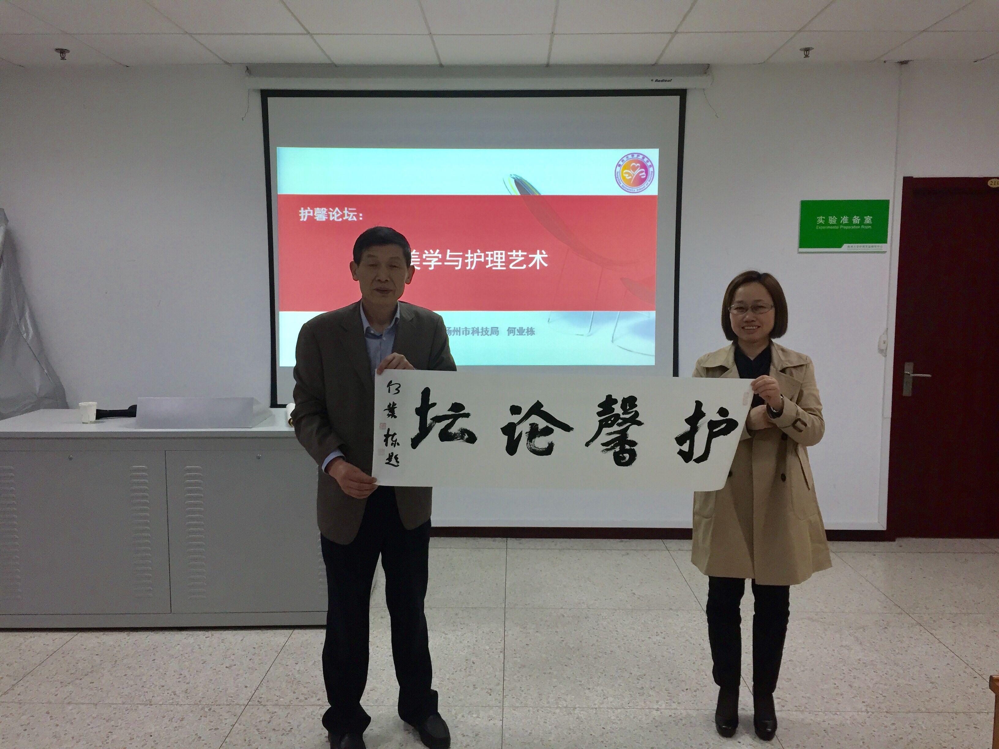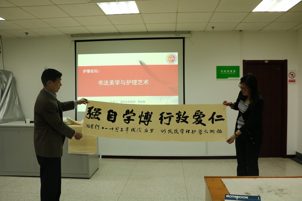 4月27日下午,护理学院邀请扬州市科技局何业栋局长为师生做题为“书法美学与护理艺术”的讲座。