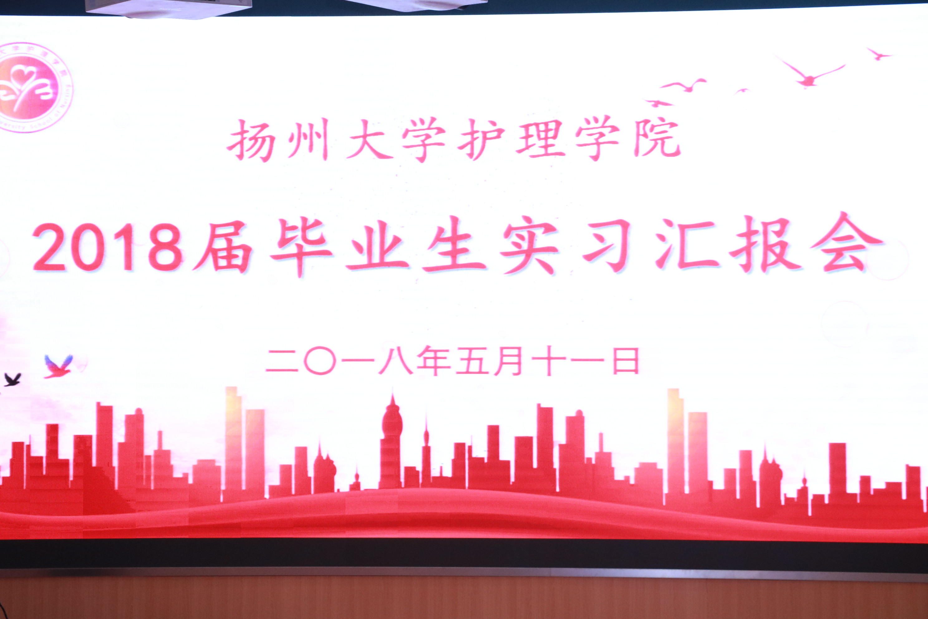 5月11日晚上七点,护理学院在逸夫图书馆报告厅举行了2018届毕业生授帽仪式暨实习汇报会。出席此次授帽仪式暨实习汇报会的老师有护理学院党委副书记邹明玮、副院长刘永兵,各教研室负责人和教师代表。