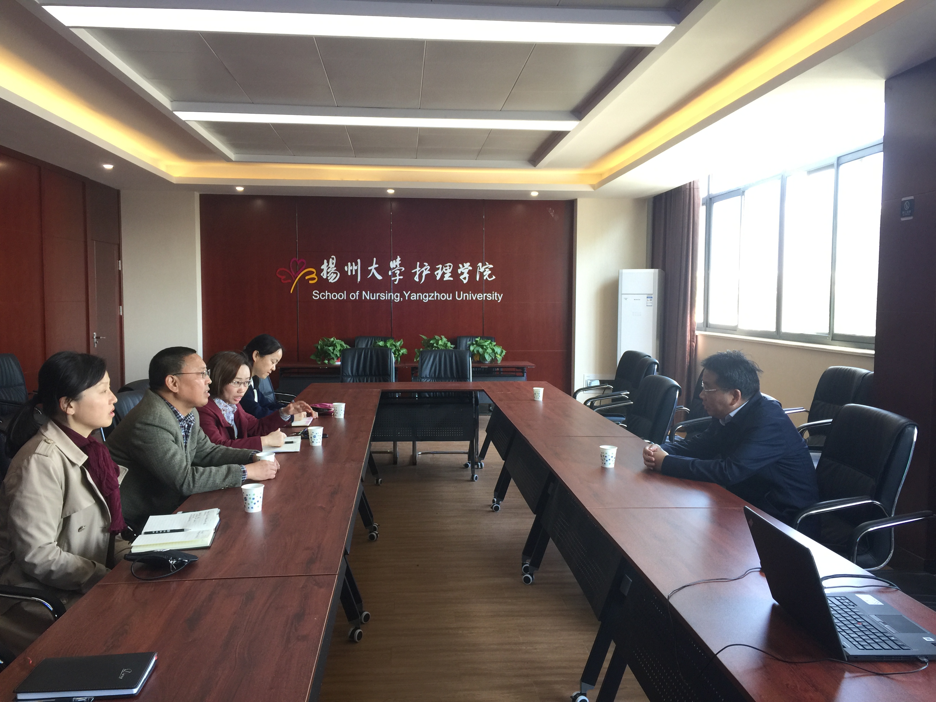 黄建晔副校长首先走访了解我院实验室、科研楼和行政楼的建设情况,对学院搬迁建设工作予以肯定,并对下一步细化完善建设环节提出了建议。随后黄建晔副校长认真听取了院党委书记刘佩健、院长龚卫娟关于党建工作、十三五规划的完成情况、师资队伍建设、教学工作、学生工作、科研工作、中外合作办学工作的汇报。他强调指出学院的各项工作要抓住重点,党建工作要重视制度建设和党委会的作用发挥;科研工作要重视国际学术会议的开展;学生工作要重视专业思想的稳固;中外合作办学工作要重视学生外语能力的提升。希望学院领导班子根据学校事业发展规划和总体部署,结合学院实际情况,坚持立德树人为基本导向,整合学科优质资源,提升人才培养质量和科学研究水平,按照“整体设计、有序推进”的工作原则,坚持有重点、按步骤地开展学院的各项工作。