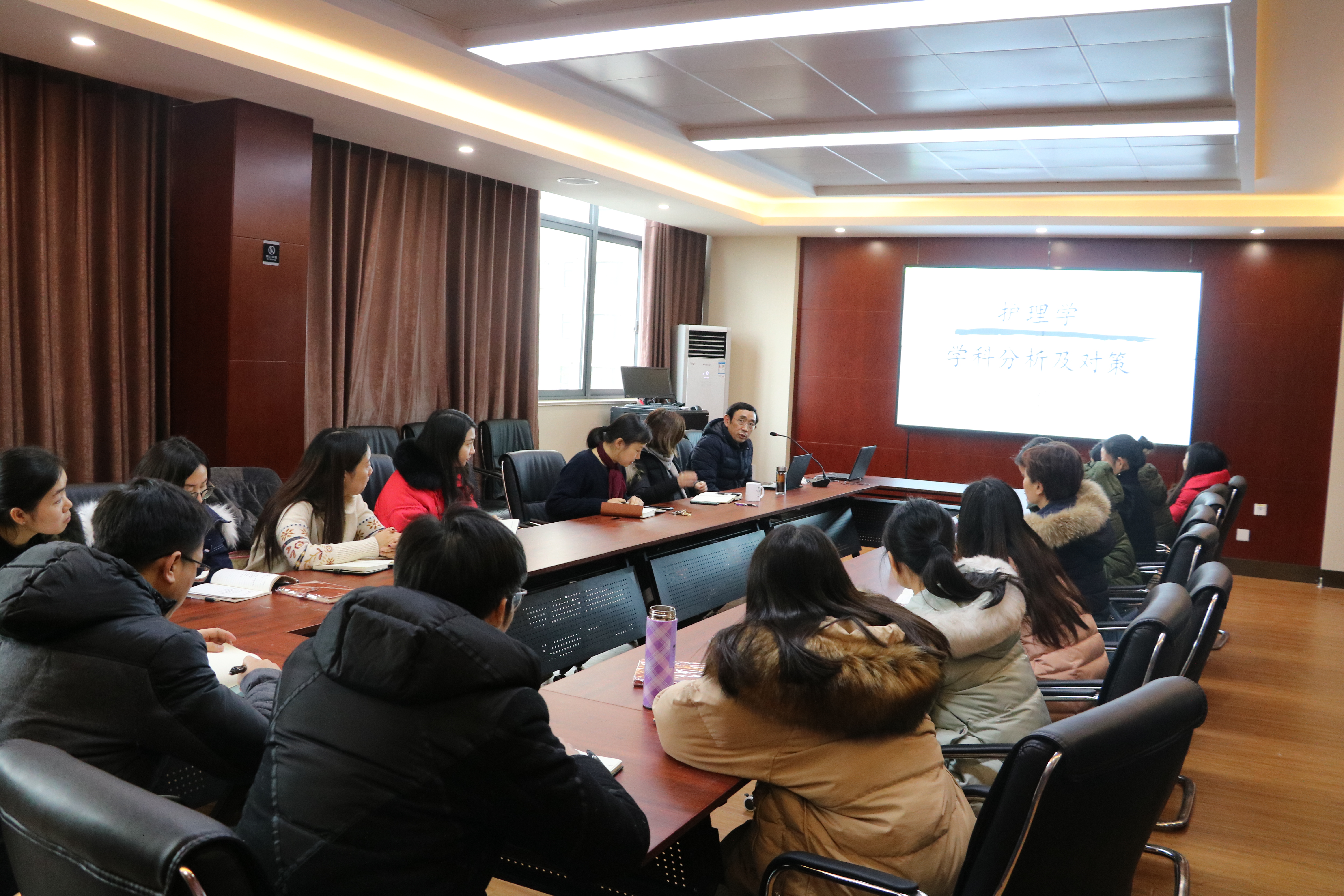 首先,刘拥军处长介绍了学校学科建设的总体情况,重点分析了省优势、省重点、校重点等优势学科的整体情况,大致分析了护理学科目前在学校所处的位置。