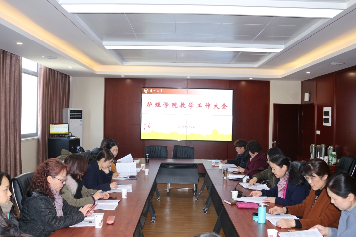 3月7日下午,护理学院教学工作会议在毓贤楼四楼会议室召开。护理学院副院长刘永兵,附属医院教育处处长胡艺、护理部主任袁媛、苏北人民医院人事处处长王艳、护理部副主任顾志娥、窦英茹,以及护理学院全体专兼职教师参加会议。