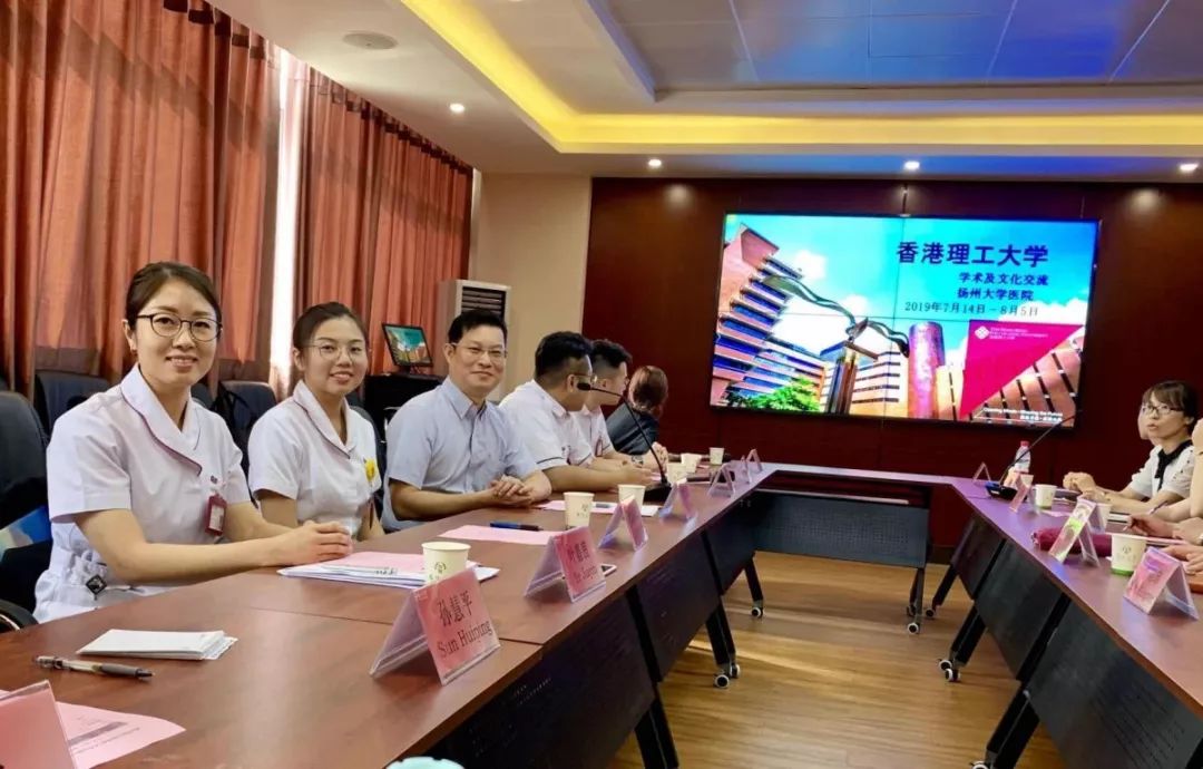 7月15日起,香港理工大学护理学院学生到我院开展为期三星期的暑期学生交流活动,欢迎仪式在护理学院毓贤楼四楼会议室举行,护理学院副院长刘永兵教授、香港理工大学护理学院学生海外交流活动联络主任冯宪基老师、护理学院党委副书记邹明玮老师、扬州大学附属医院护理部主任陈玉瑛老师、苏北人民医院陆云主任、国际交流与合作办公室祝娉婷主任以及香港理工大学护理学院学生、扬州大学护理学院学生参加了此次欢迎活动。