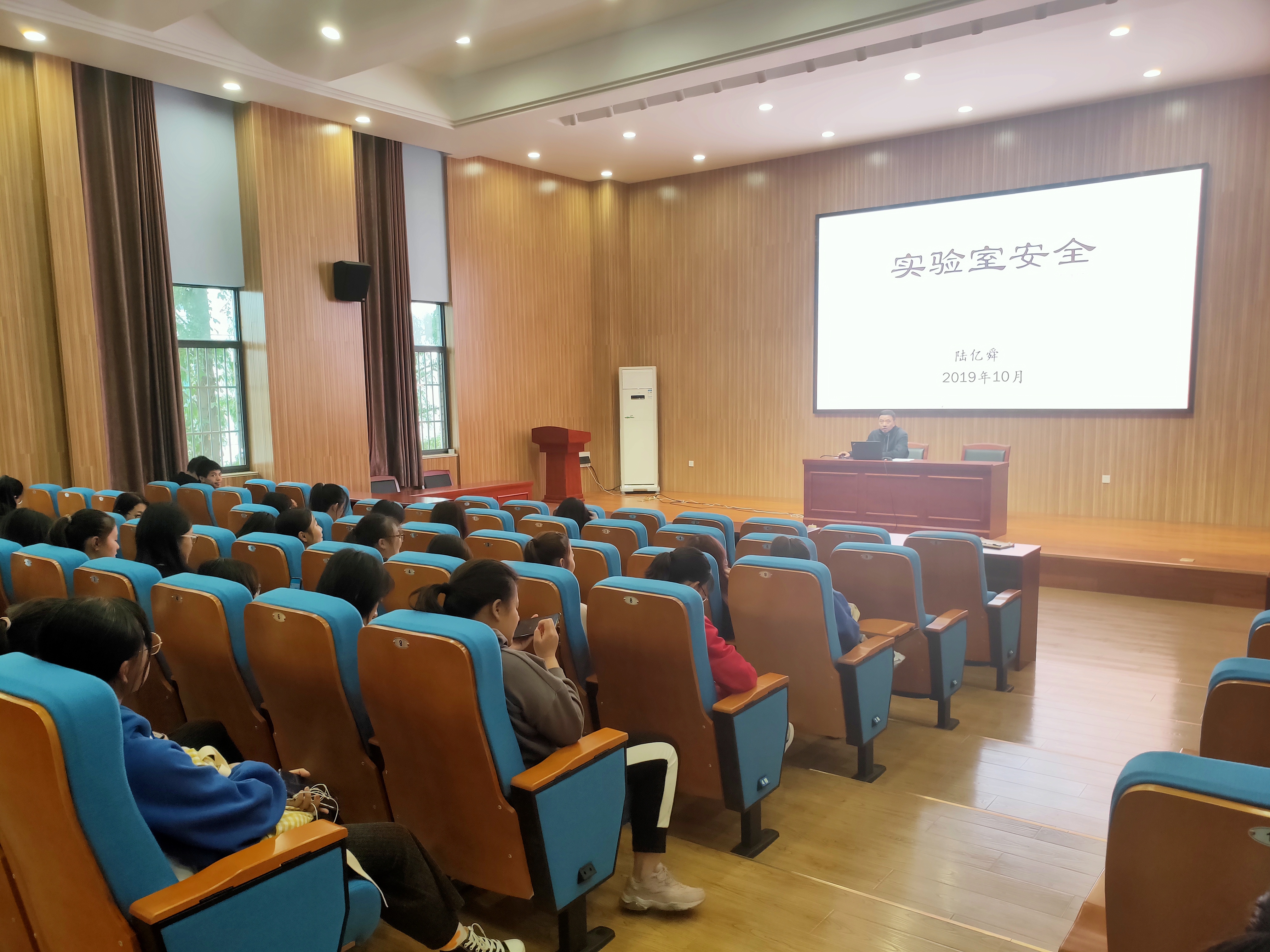 根据学校安全工作布置要求,10月27日-28日,护理学院针对2019级本科生和研究生新生举办实验室安全教育培训讲座,陆亿舜老师以《实验室安全》为题作培训讲座。陆老师介绍了护理实验教学中心的相关情况、实验室安全操作守则以及消防安全知识,强调了操作规范、自我防护、强化安全意识的重要性。