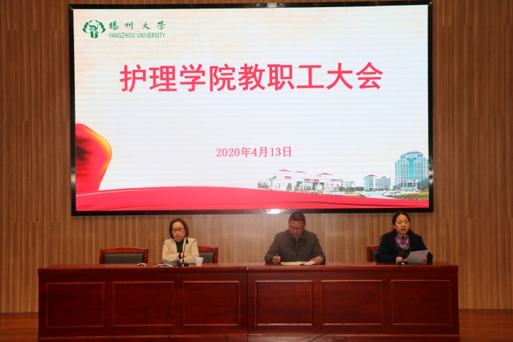 4月13日,护理学院于毓贤楼三报告厅召开新学期教职工大会,会议由党委书记刘佩健主持,全体教职工参加会议。