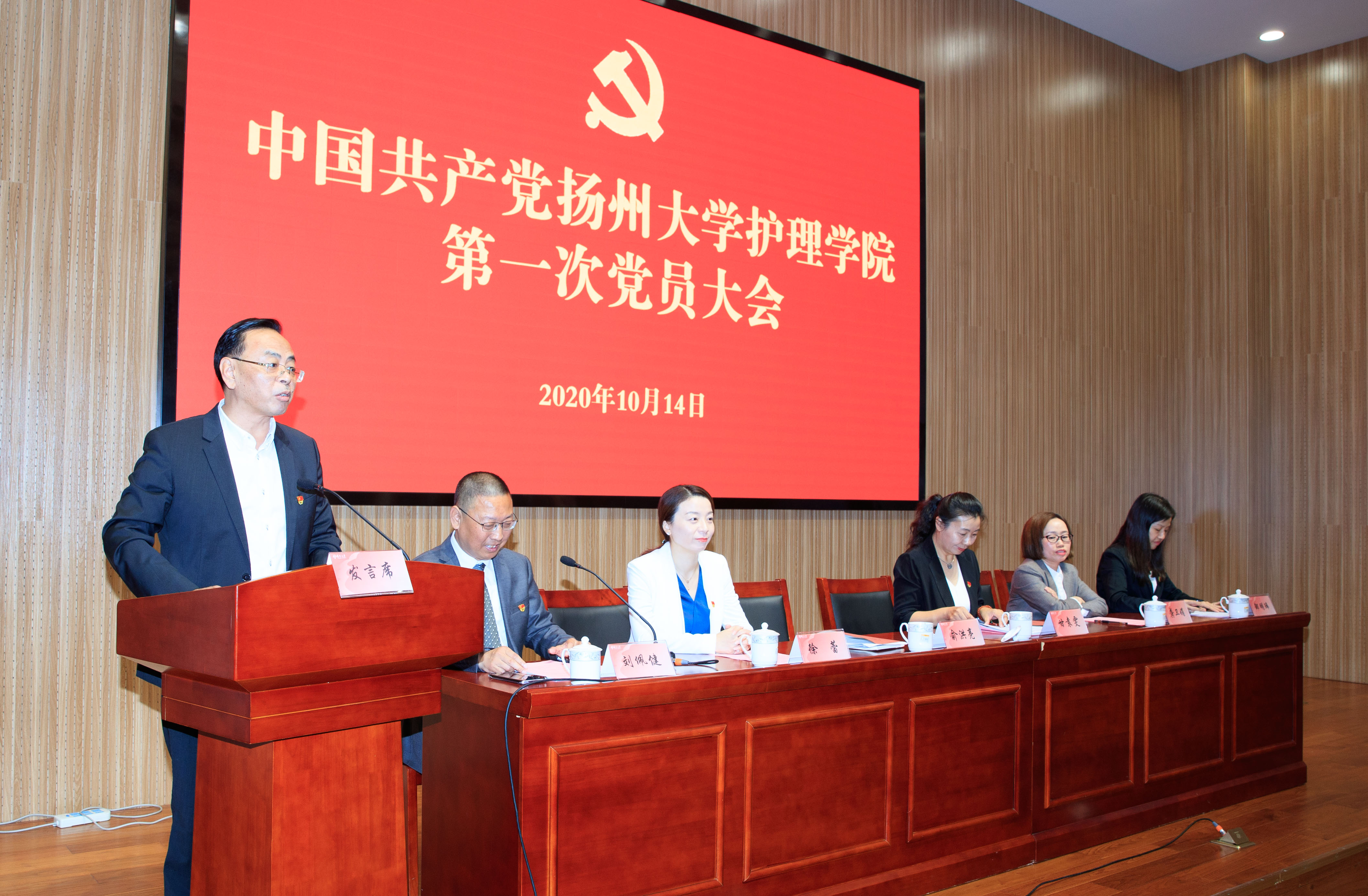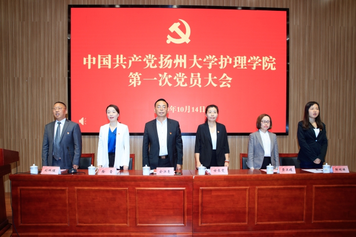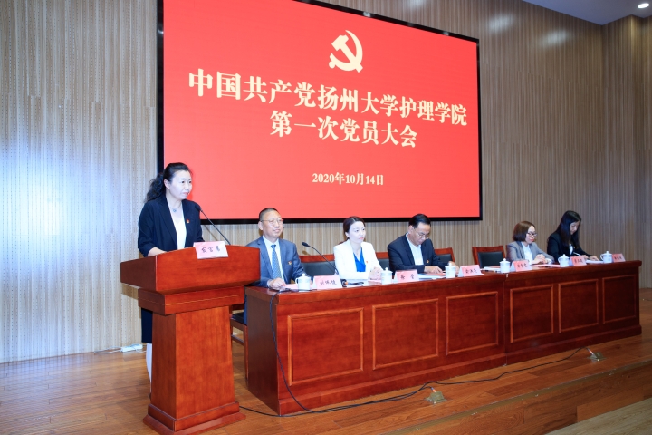 10月14日,中国共产党扬州大学护理学院第一次党员大会在路北校区毓贤楼三楼报告厅召开,副校长俞洪亮出席大会并讲话。