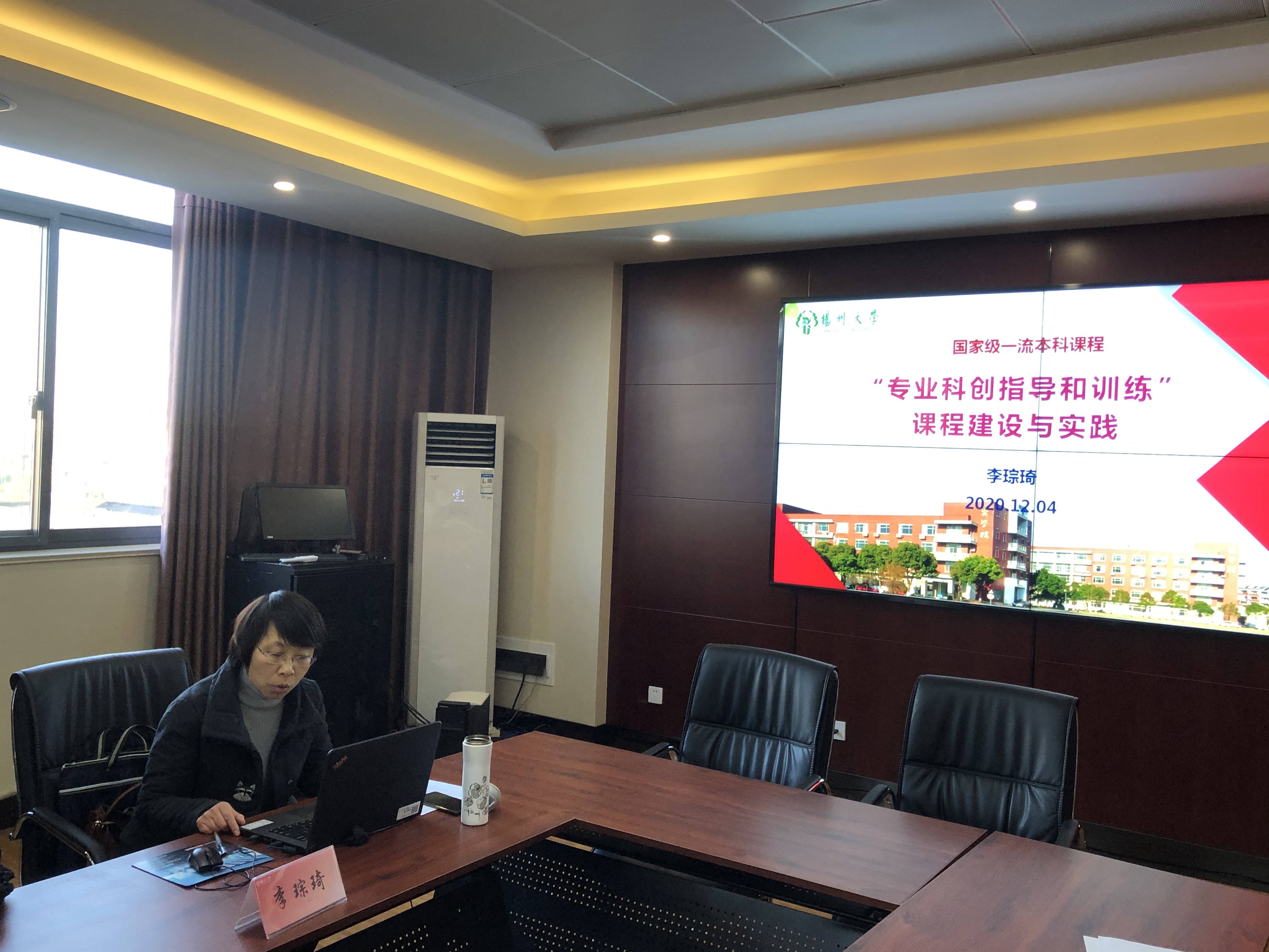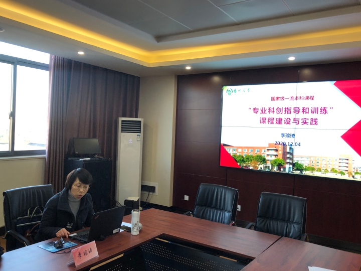 本次活动邀请了扬州大学建筑科学与工程学院李琮琦副教授以已立项国家级一流课程《专业科创指导和训练课程建设与实践》为例,介绍国家一流本科课程建设情况。李老师从国家一流本科课程概况、《专业科创指导和训练》课程教学理念、教学团队建设、课程设计与实施、建设成效与持续建设计划、创新特色等方面进行全面、系统的讲解,并通过大量实例,毫无保留的将建设经验进行分享。会后,与会教师就如何建设国家一流本科课程与李老师进行深入交流和探讨。