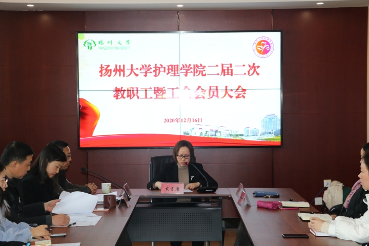 12月16日下午,我院召开了第二届教职工暨工会会员大会第二次会议。党委副书记邹明玮主持会议,大会听取并审议了龚卫娟同志代表学院所作的2019年-2020年学院党建工作、师资队伍建设、学科建设、教学与科研、学生工作、国际化工作和继续教育工作等方面的工作报告,审议并通过陆亿舜同志代表第二届工会委员会所作工作报告。大会增补选举牛长敏为护理学院工会委员会委员。