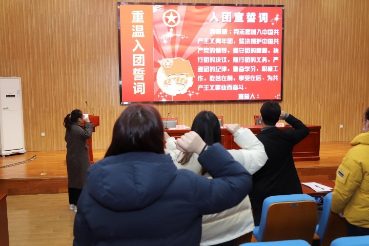 学生代表张伊柠首先代表学院第一期青马班全体学员作表态发言,她表示开设本次青马班更好地为我们提供了学习的平台,进一步增强学生骨干的思想政治,增强自身实践能力。与此同时,本次活动的开展更加坚定了大学生的信念和理想,激励我们不断奋起,永不气馁,更加执着地去追求自己的目标。最后,张伊柠同学带领全体成员进行了宣誓。