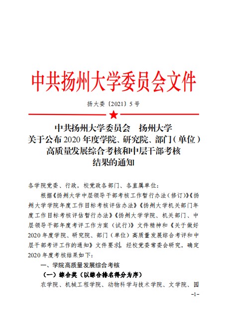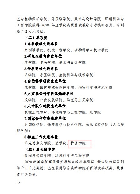 近日,校党委公布了2020年度学院、研究院、部门(单位)高质量发展综合考核结果,我院荣获校学生工作先进单位单项奖。