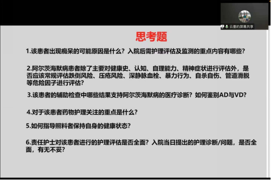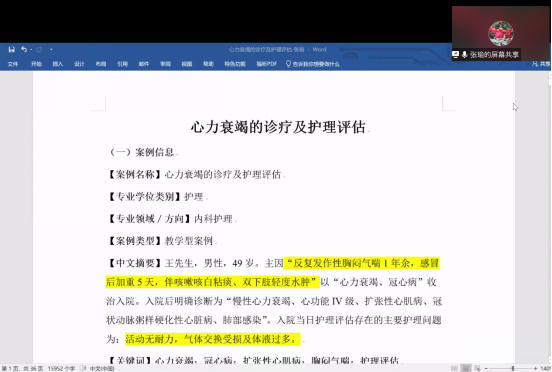 此次授课时间从8月2日开始,持续两周时间,采用线上教学形式,授课内容详实,有很强的指导性和实用性。以具体案例为载体,结合视频、文献等其他资料,从疾病病因、临床表现、护理评估、护理诊断、护理措施、护理问题等角度展开培训。内容涉及神经疾病护理、老年疾病护理、重症护理、癌症护理、儿科护理等多个专科护理知识,旨在为学院研究生提供多方位、多专科、实践性强的专业知识指导。