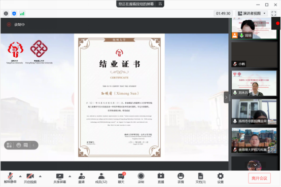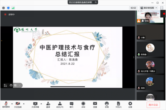 最后,我院段培老师宣读此次顺利完成暑期实习交流活动的学生名单并颁发结业证书,进行合影留念,2021年度香港理工大学护理学院学生为期两周的《中医护理技术和中医食疗》暑期实习交流活动暨结业典礼圆满落下帷幕。