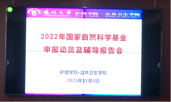 为了进一步提升国家自然基金申请书撰写的质量和水平,不断夯实基础,确保量质提升。11月3日下午,我院在毓贤楼四楼会议室召开2022年国家自然科学基金申报动员及辅导报告会。护理学院·公共卫生学院院长郑英、扬州大学动物科学学院李碧春教授、学院全院教师以及部分研究生同学参加,会议由郑英院长主持。