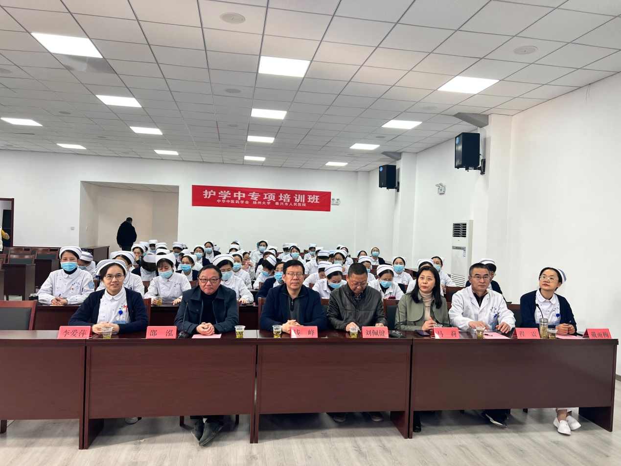 为促进中医护理全面发展,更好地培养中西医护理人才,由我院主办的“护学中”项目11月13日在泰兴市人民医院正式开班,出席开班仪式的领导与嘉宾有:中华护理学会副理事长、中华中医药学会护理分会主任委员张素秋;中华中医药学会主任郭希勇;学院党委书记刘佩健;中国高校科技期刊研究会医学期刊专委会主任钱峰;泰兴市护理学会会长邵泓;泰兴市人民医院副院长范辉;泰兴市人民医院护理部主任李爱萍;以及泰兴市人民医院全体学员。