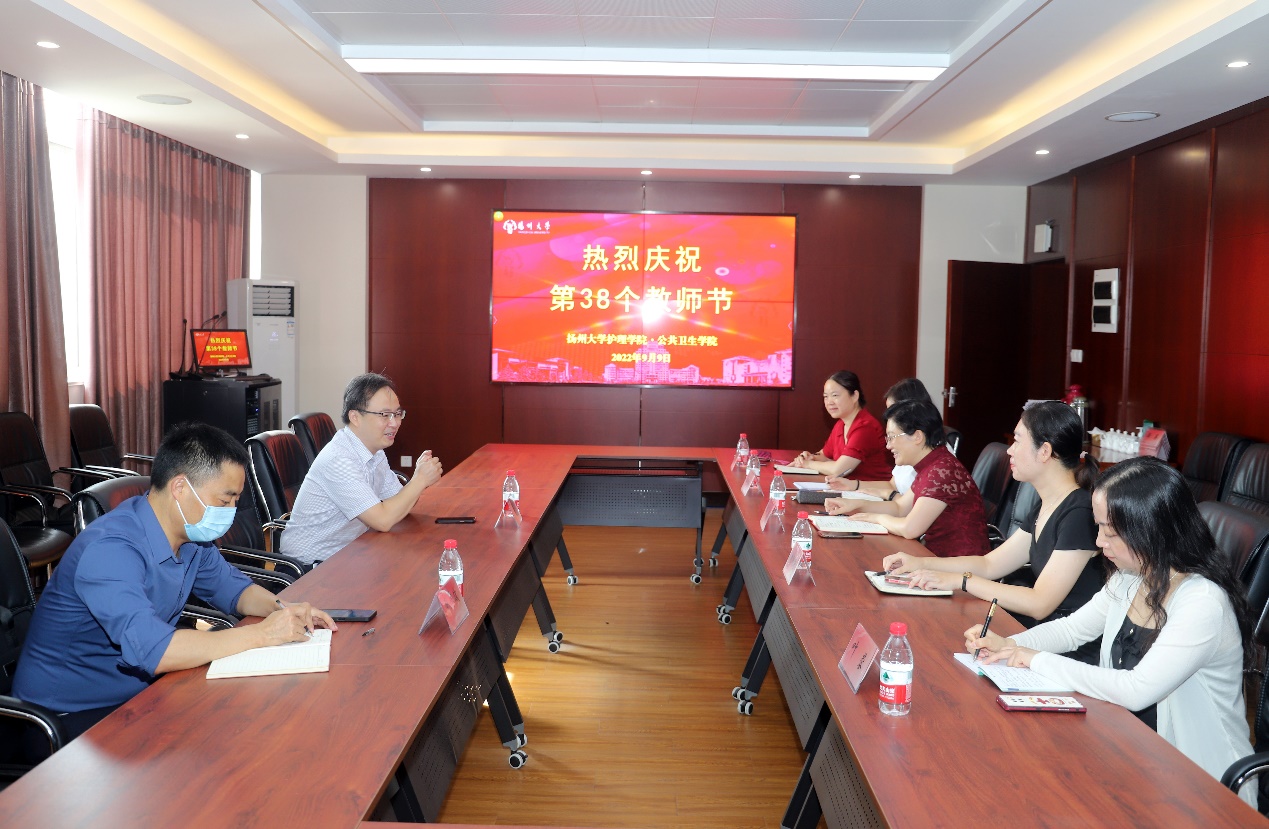 9月9日,第38个教师节来临之际,韩杰副校长来我院慰问扬州大学2022年本科教学“金讲台奖”获得者—祝娉婷老师,送上鲜花和节日祝福,并向辛勤耕耘的广大教师致以诚挚的节日问候,鼓励他们爱岗敬业、教书育人,争当“四有”好老师,为学校事业发展作出新贡献。