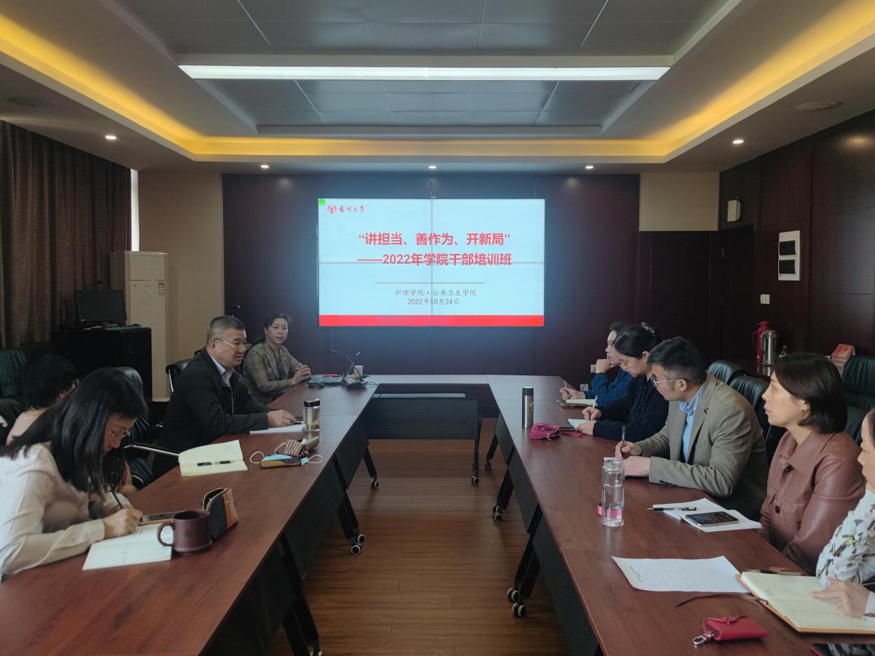 为强化理论武装与舆论引导,切实增强学院各级干部的政治素质和工作能力,打造忠诚、干净、担当的高素质专业化干部队伍,2022年10月24日-28日,学院举办“讲担当、善作为、开新局”为主题的干部培训班。全体院领导、科级干部、党支部负责人、教研室负责人、辅导员等人员参加培训。