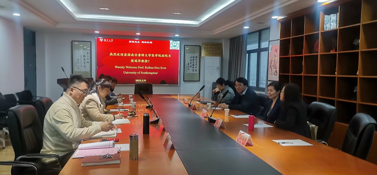 3月21日,英国南安普顿大学医学院副院长侯瑞华教授到我校交流访问,与国际处、医学部、医学院、护理学院·公共卫生学院举行会谈,我院郑英院长,公共卫生专业学科带头人卢光玉副教授及国际交流与合作办公室高旭老师共同参加了此次会谈。