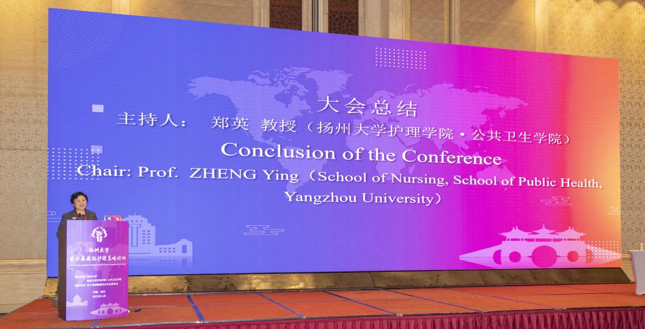 扬州大学护理学院·公共卫生学院院长郑英作大会总结发言