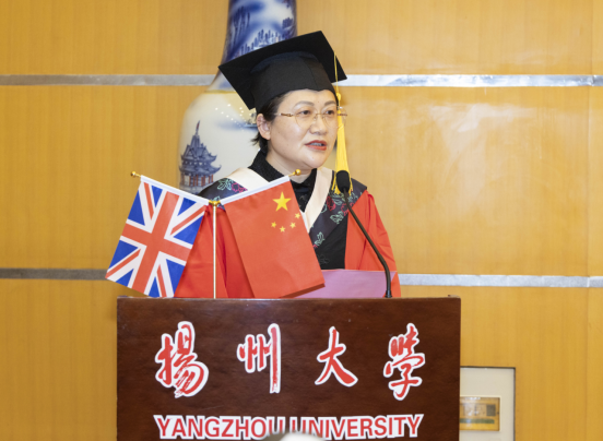 随后,英国赫尔大学健康科学学院对外交流部主任Deborah Robinson对毕业生们致以美好的祝愿,他指出,在全球健康和人类福祉面临最严重威胁的情况下,同学们成功地完成了学业,表现出了非凡的毅力和决心,两校在合作的过程中学生培养、科研合作取得丰硕成果。并对所有在赫尔大学-扬州大学双学位护理项目中付出辛勤劳动的教职员工们,表示衷心的感谢。