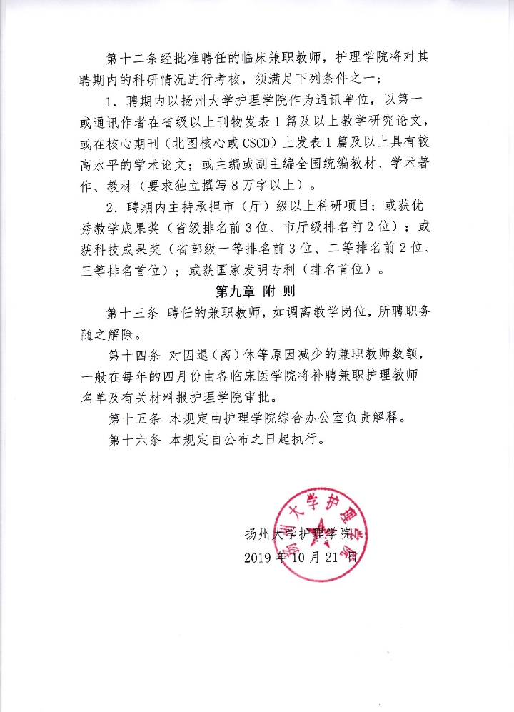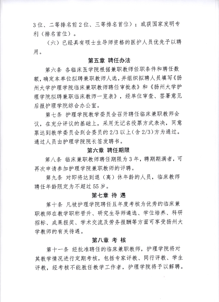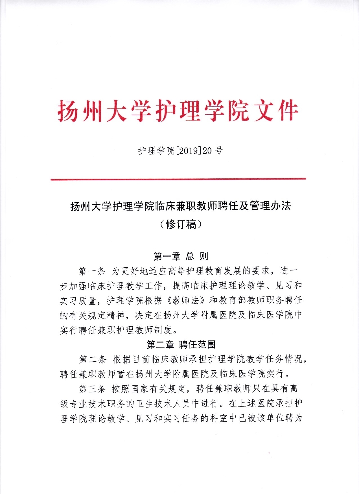扬州大学护理学院临床兼职教师聘任及管理办法(修订稿)