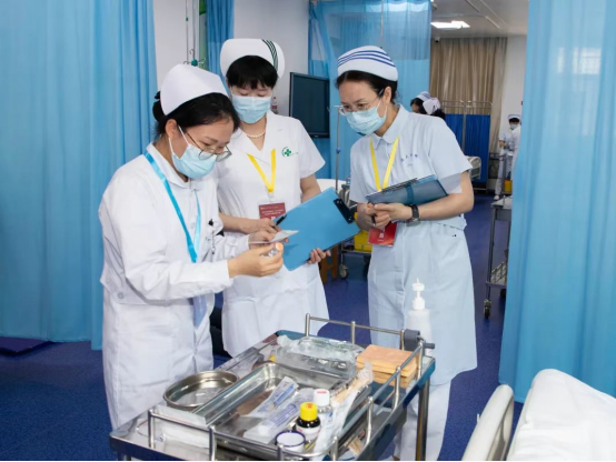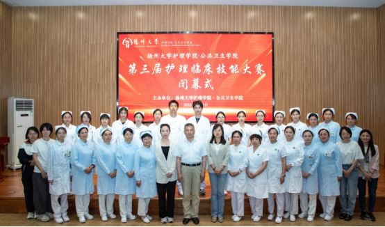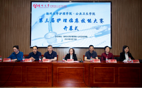 为进一步提高实习护生临床护理综合技能水平,培养学生创新思维和实践能力,护理学院第三届临床护理技能大赛于5月19日和26日在护理学实验教学中心举行,扬州大学副校长龚卫娟、扬州大学教务处处长严长杰、扬州大学创新创业学院副院长吴锋、扬州大学附属医院和苏北人民医院相关负责人以及全体院领导、行政人员、教师、裁判和参赛选手参加此次大赛,大赛由护理学院副院长祝娉婷主持。首先,由龚卫娟副校长作开幕式致辞。她指出,护士临床技能大赛给各位护士提供了自我展示、自我提升的平台,对提高护士临床技能、培养综合性人才具有实际意义;她希望全体参赛选手充分发挥水平,沉着应对,赛出风格,赛出水平,展现白衣天使的良好精神风貌,并预祝大赛圆满成功。学院党委副书记邹明玮详细介绍了本次护士临床技能大赛的注意事项,要求参赛选手严肃认真对待此次比赛,严格遵守比赛规则,赛前认真准备,以积极的心态对待比赛结果。同时她还强调裁判员要以专业守护比赛场规,用担当维护竞赛秩序。并预祝大赛圆满成功,选手取得优异成绩。随后,参赛教师代表苏北人民医院钱红梅老师、学生代表龚金俐同学、裁判代表俞萍老师依次进行发言。