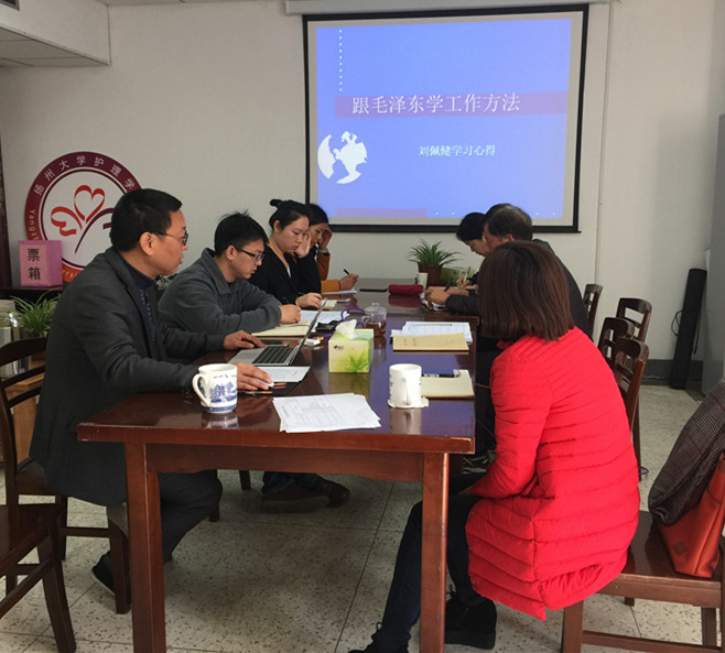 院党委书记刘佩健在专题学习前先就学院工作进行布置,并就如何做好学院工作作题为《跟毛泽东学习工作方法》专题学习宣讲,要求把毛泽东总结的12个工作方法学深学透,贯穿到学院日常工作中去。