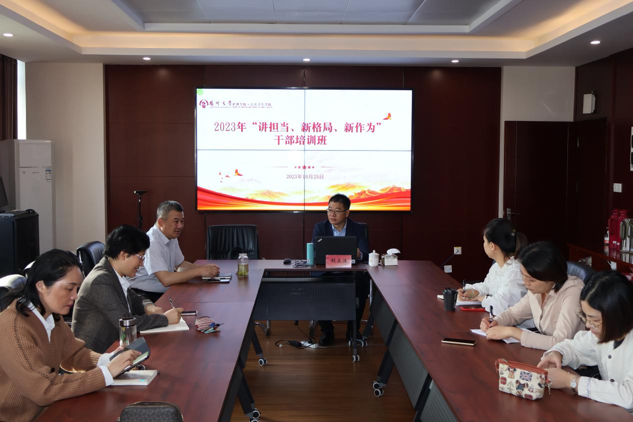 为切实增强我院党员干部的政治素质和工作能力,10月25日,学院举办“讲担当、新格局、新作为”为主题的干部培训班。全院科级以上干部、党支部书记、党支部委员、教研室负责人、学生工作政治辅导员参加培训。