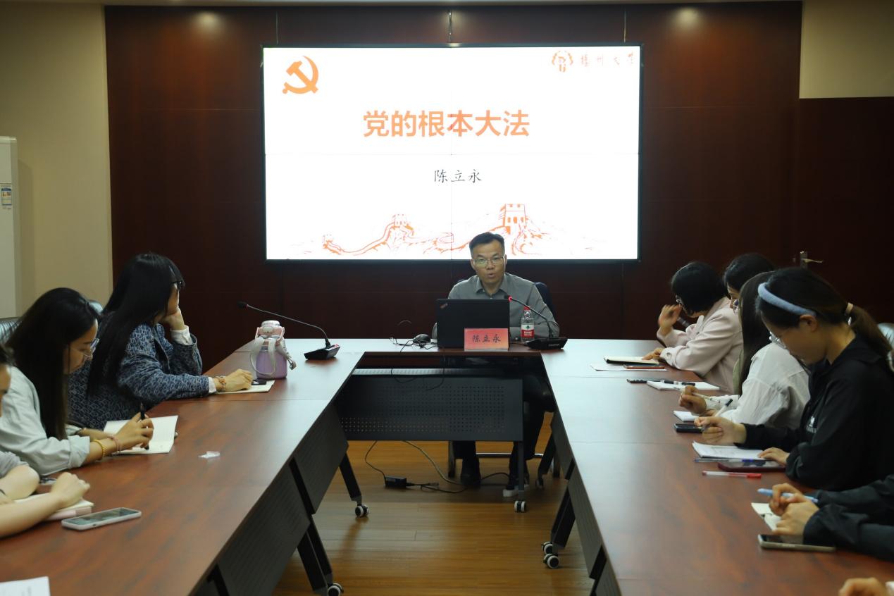 陈立永作题为《党的根本大法》专题讲座,从党章的重要地位,党章的发展历程,党章的主要内容及党章的学习贯彻四个方面展开具体讲解。陈部长对党章的历次修订情况、背景、主要内容、特点作了详细介绍,强调了党章是我们立党、治党、管党的总章程,是全党最基本、最重要、最全面的行为规范,鼓励大家要坚守初心,遵守党章,做一个合格的党员。