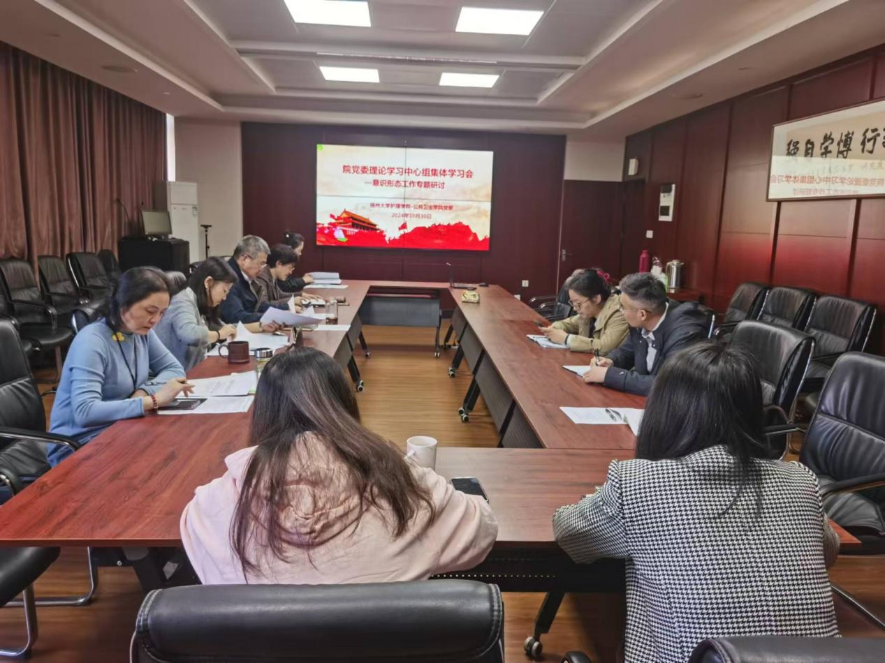 会议传达学习学校《关于印发<扬州大学2024年意识形态安全专项工作方案>的通知》文件精神,并组织学习了习近平总书记关于意识形态工作的重要指示。院领导班子成员结合分管工作,作了交流发言。