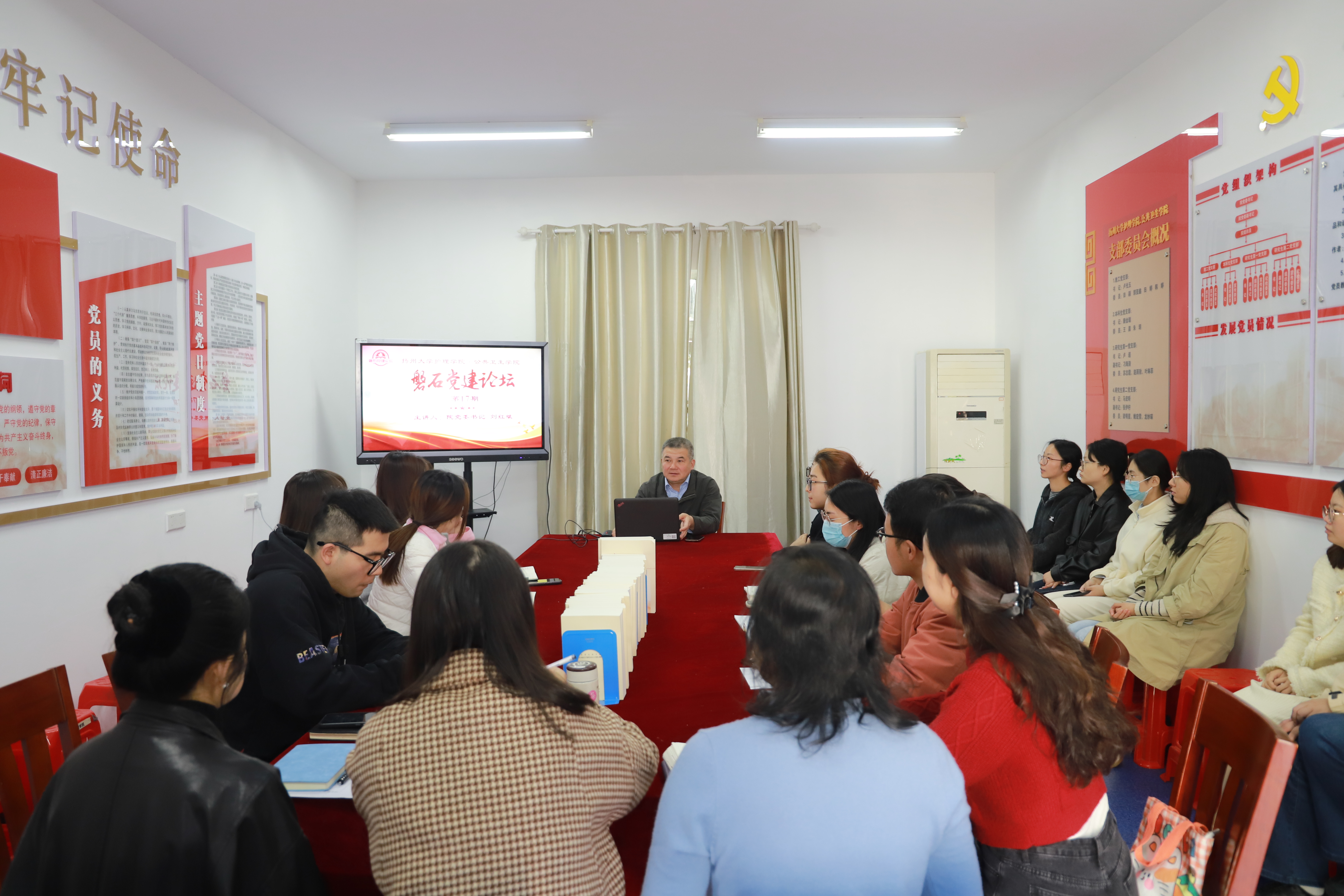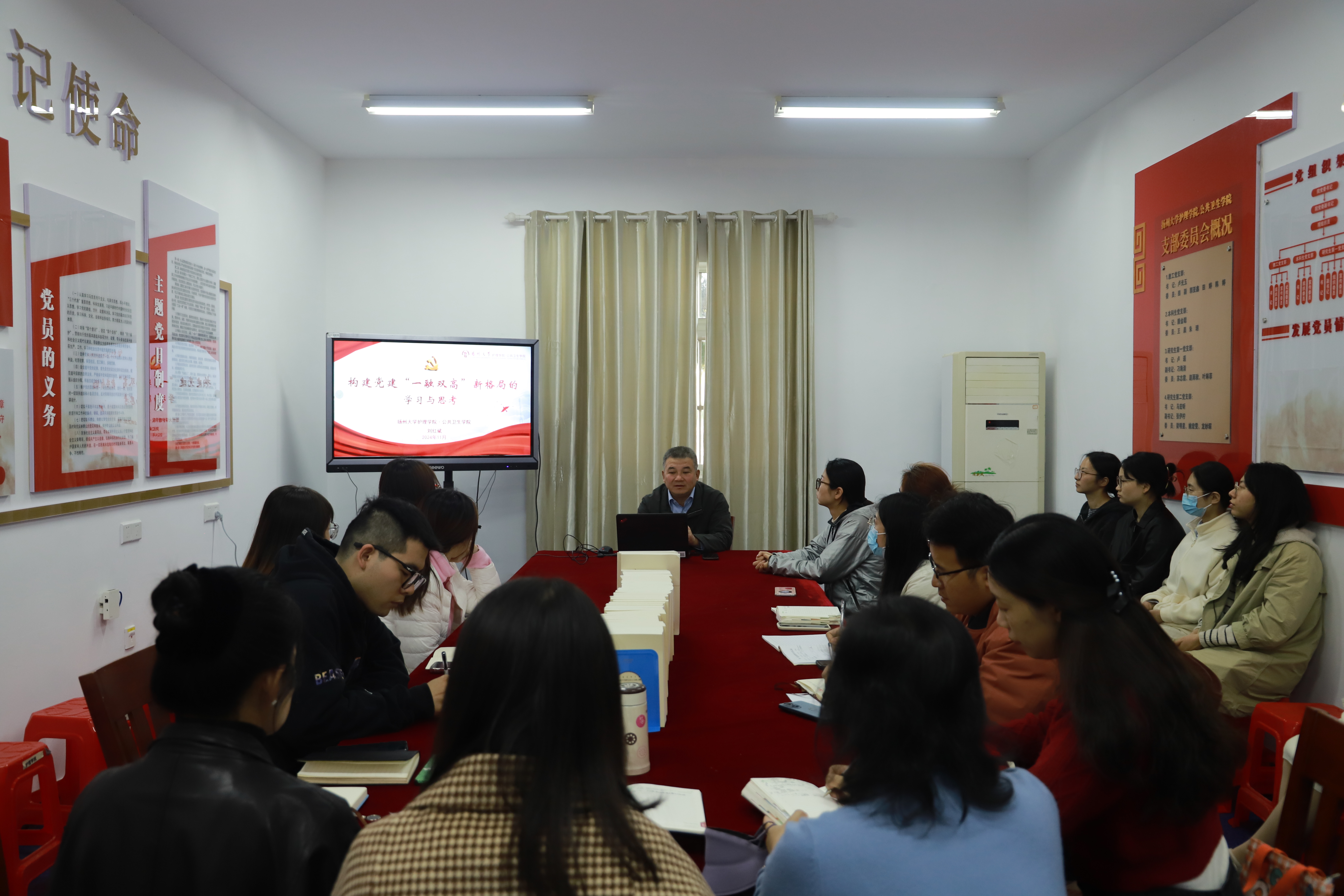 11月6日下午,学院举办了第17期“磐石党建论坛”,院党委书记刘红斌给党员同志们带来了一堂以“构建党建‘一融双高’新格局的学习与思考”为主题的党课,参加本次党课的党员同志包括学院各党支部书记、副书记、支部委员、研究生第一(护理学硕)党支部全体党员。本次党课旨在深化对“一融双高”党建模式的认知,启发各支部党建与业务融合的实践探索。