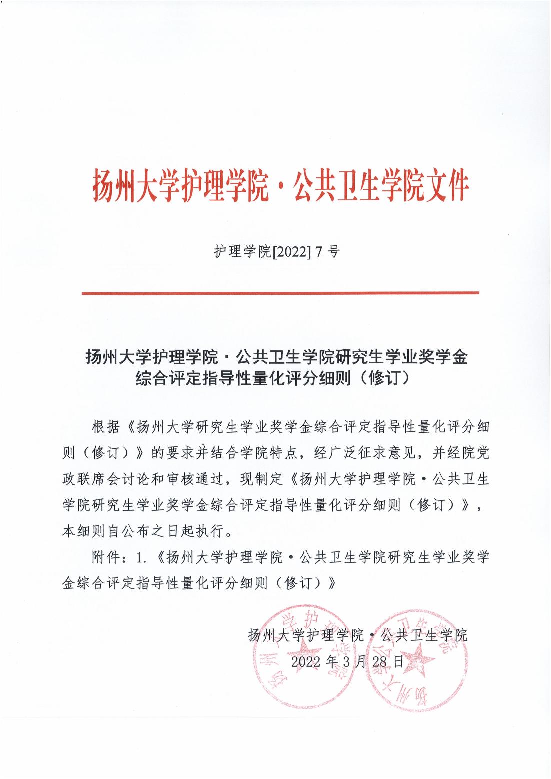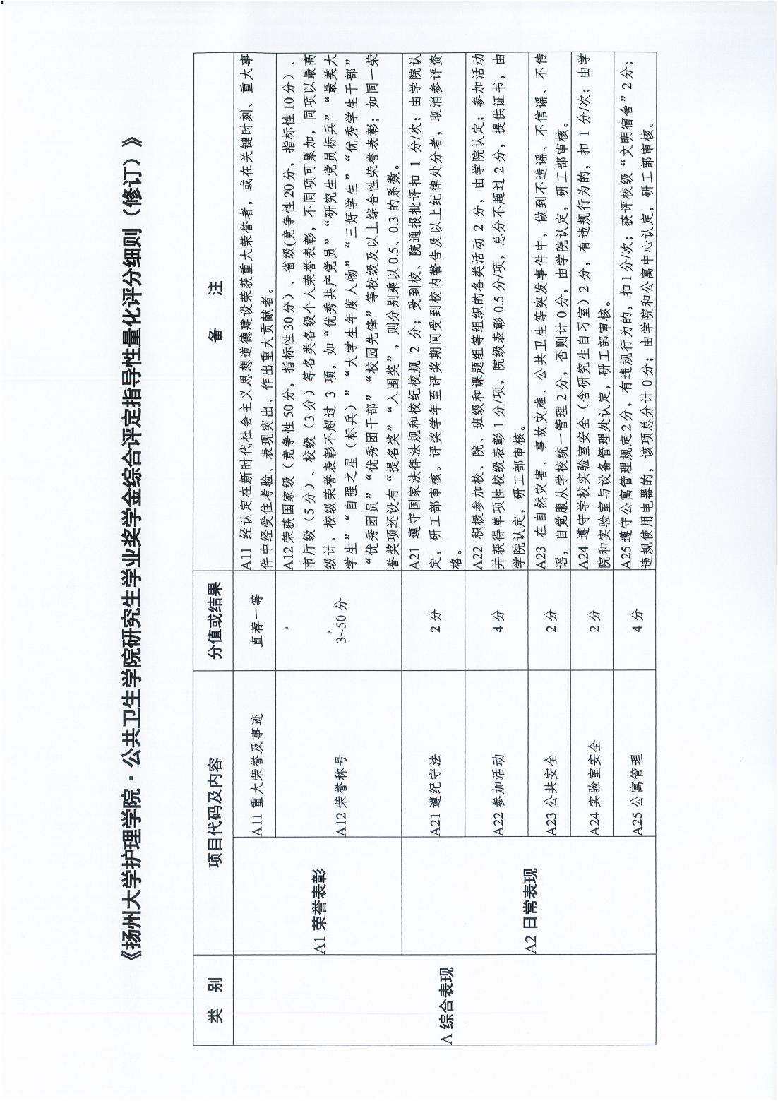 扬州大学护理学院·公共卫生学院研究生学业奖学金综合评定指导性量化评分细则(修订)
