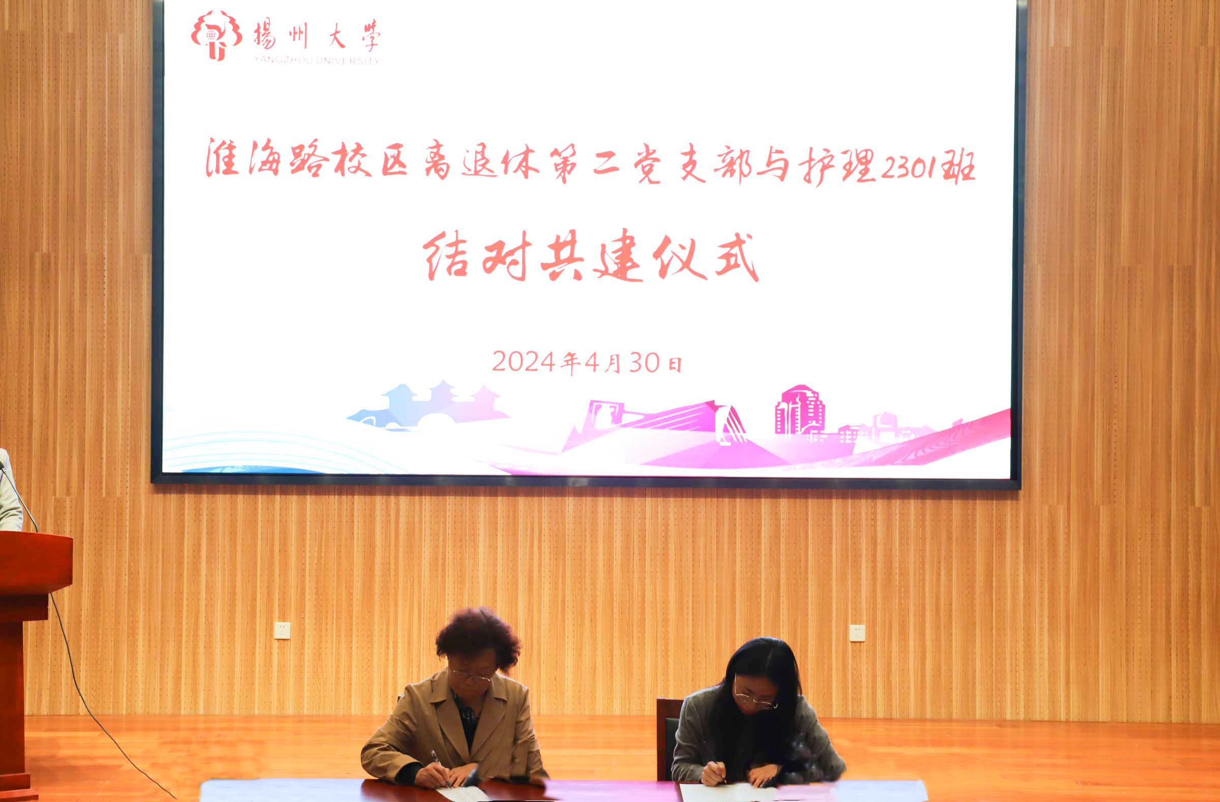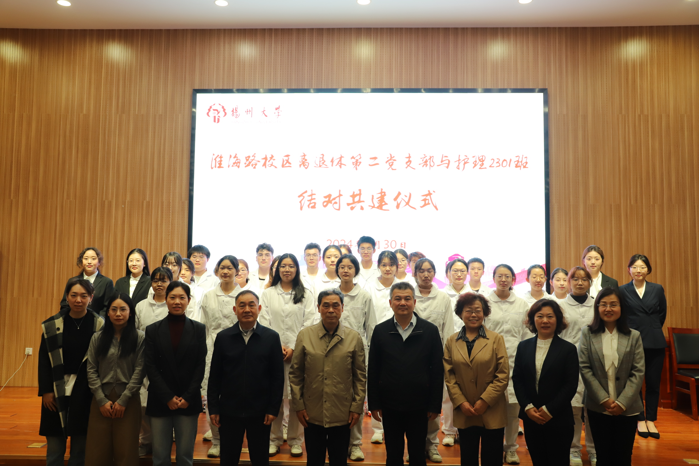 4月30日上午,在毓贤楼三楼报告厅举办春学期关工委工作会议暨结对共建仪式。校关工委副主任(驻会)、校关工委秘书长李士庭,校关工委副秘书长、办公室副主任、校离退休处副处长夏玉荣,淮海路校区离退休党总支书记唐尧,院党委书记、院关工委名誉主任刘红斌,淮海路校区离退休第二党支部书记、院关工委常务副主任季全兰,院关心下一代工作委员会全体成员、共建班集体护理2301班全体同学参加此次会议。会议由院党委副书记、院关工委主任邹明玮主持。