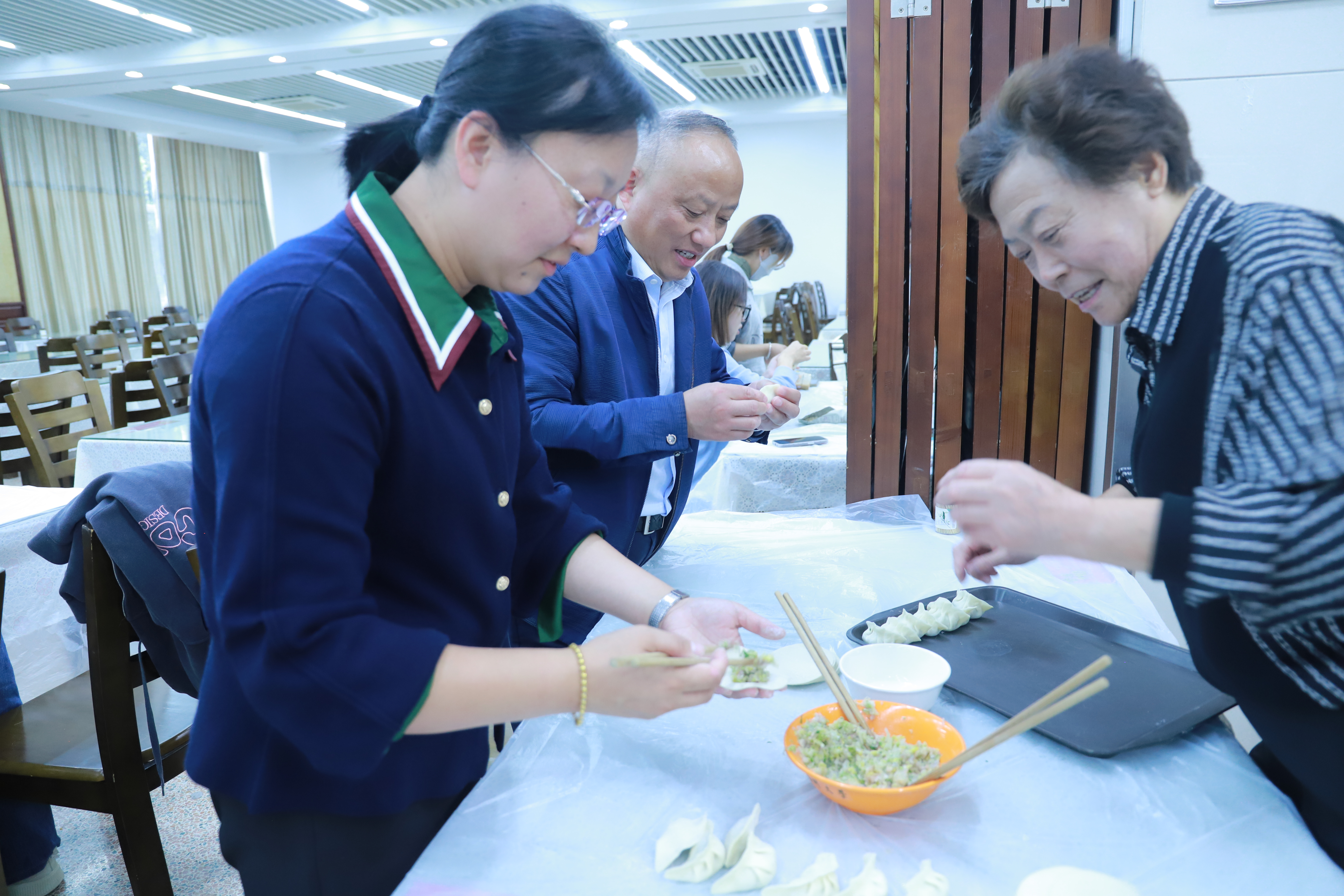 会议结束后,所有师生共同前往荷花池一楼教职工餐厅,共聚包饺子,情暖重阳节。