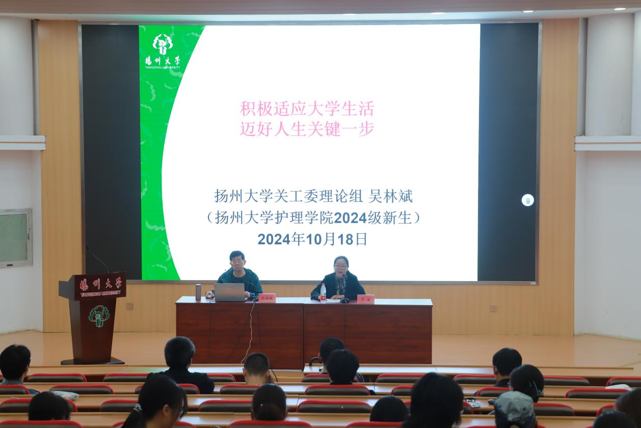 为帮助同学们提升自我,抓住时代机遇,我院于10月18日晚6时在荷花池逸夫报告厅召开“积极适应大学生活,迈好人生关键一步”讲座。2024级全体本科生参加此次讲座,会议由扬州大学关工委理论组吴林斌老师主讲,院团委书记卢遥主持。