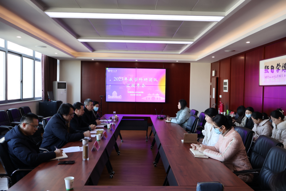 1月24日下午,我院在毓贤楼四楼会议室召开2023年度教学科研团队年度汇报会。扬州大学实验室与设备管理处(测试中心)处长刘鹏展、医学部主任梁景岩、教务处副处长张来、院党委书记刘红斌、院长郑英以及全体专任教师参加了此次会议。