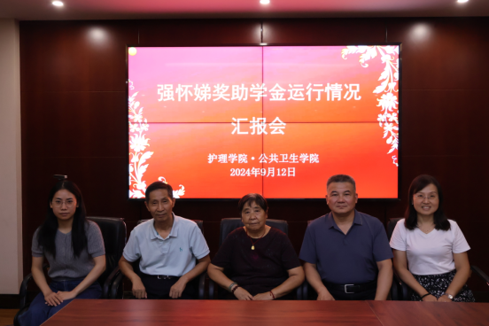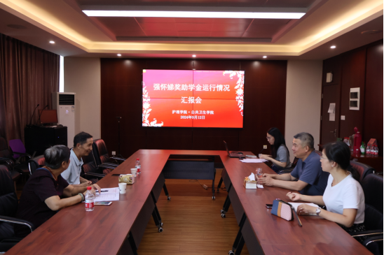 2024年9月12日下午,我院在毓贤楼四楼会议室开展“强怀娣奖助学金”运行情况汇报会,出席本次会议的强怀娣老师,戴占国老师,院党委书记刘红斌、党委副书记邹明玮、辅导员郝巧巧。
