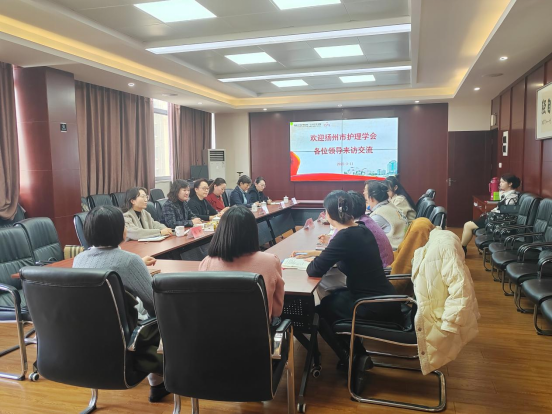 3月11日下午,扬州市护理学会理事长王艳、扬州市中医院副院长魏金荣、苏北人民医院护理部副主任方方、扬大附院护理部副主任胡兰英、苏北人民医院工程部张勤、苏北人民医院质控科副主任徐薇一行来我院调研交流,学院院长郑英、副院长祝娉婷及教师代表参加了本次活动。