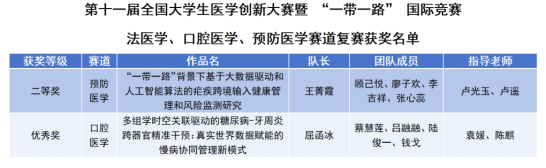 6月6日-8日,由高等学校大学生医学创新竞赛委员会主办的第十一届全国大学生医学创新大赛暨“一带一路”国际竞赛法医学、口腔医学、预防医学赛道复赛在西南医科大学顺利举办。来全国170余所高校的627支队伍、132位专家,共1900余名师生代表共同参与本次复赛,赛事规模再创复赛新高!我院本科生共有2个项目参加复赛,凭借扎实的研究基础、严谨的实验设计、创新的项目立意以及出色的现场汇报与答辩,最终荣获二等奖1项、优秀奖1项。