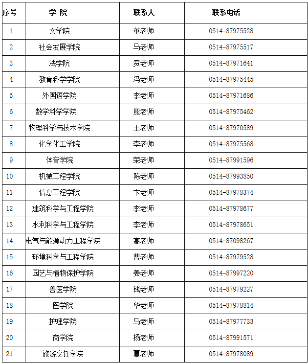 关于转发我校《扬州大学2019年成人高等学历教育招生学院联系方式》