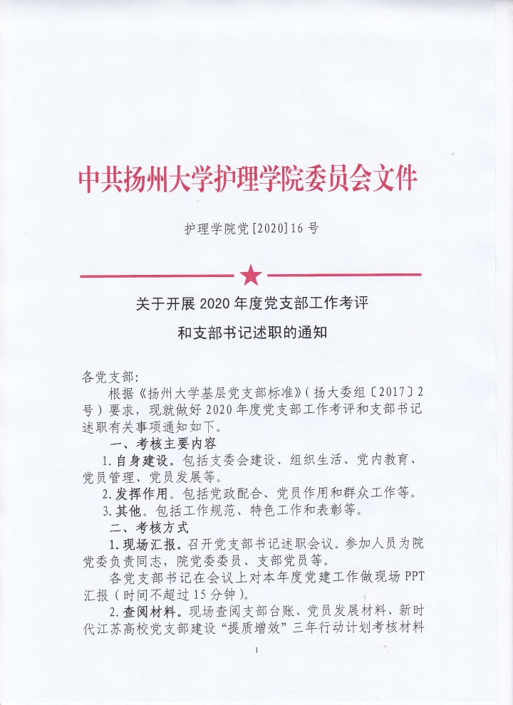 关于开展2020年度党支部工作考评和支部书记述职的通知