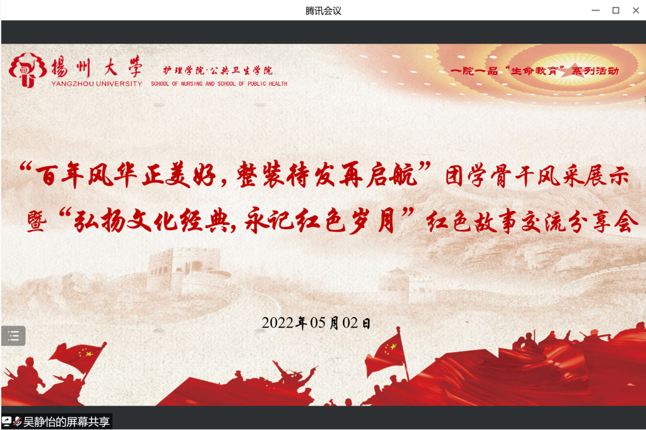 为推进各支部“学党史、强信念、跟党走”学习教育扎实开展,不断深化青少年思想政治引领,引导我院学子厚植爱党、爱国、爱社会主义的情感,5月2日晚7时,我院团委开展百年风华正美好 ,整装待发再启航”团学骨干风采展示暨“弘扬文化经典,永记红色岁月”红色故事交流分享会,让红色基因、革命薪火代代传承。本次活动在线上开展,以微团课的形式,结合PPT等多媒体技术,采用多种呈现形式,进行理论宣讲。