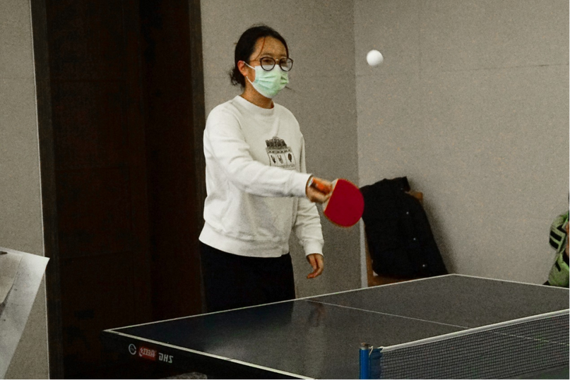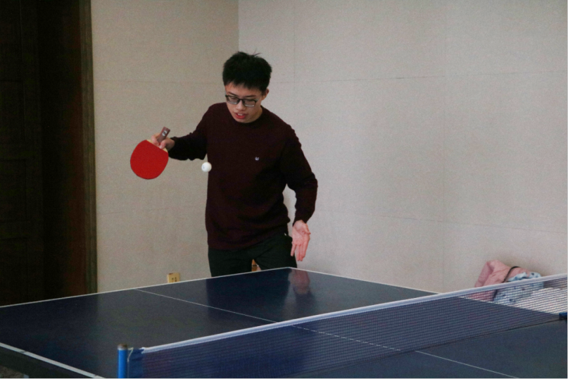 8:30分,比赛正式开始!青春飞扬,点燃热情;挥汗如雨,勇于拼搏。乒乓作响,选手们手上的球拍上下翻飞;呼声连连,围观的同学为他们加油助威。不同年级的选手展示球技,相互交流切磋,在这寒冷的冬日,体育馆里却是一副热火朝天的景象。